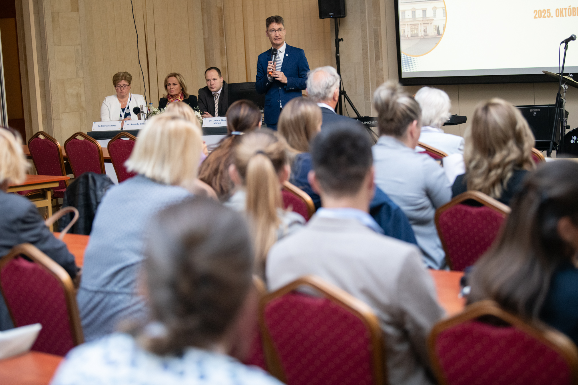 A megjelenteket dr. Lőrincz Márton Ákos, a Fejér Vármegyei Szent György Egyetemi Oktató Kórház orvosigazgatója is köszöntötte, aki belgyógyászként egy kicsit irigykedve, örömét fejezte ki, hogy milyen sok résztvevője van a gyermekorvosok találkozójának. Arra bíztatta a résztvevőket, ne legyenek szégyenlősek, merjenek kérdezni az előadóktól, egymástól, hiszen így van igazán értelme egy ilyen szakmai találkozónak, így válik igazi tudásmegosztássá a konferencia.