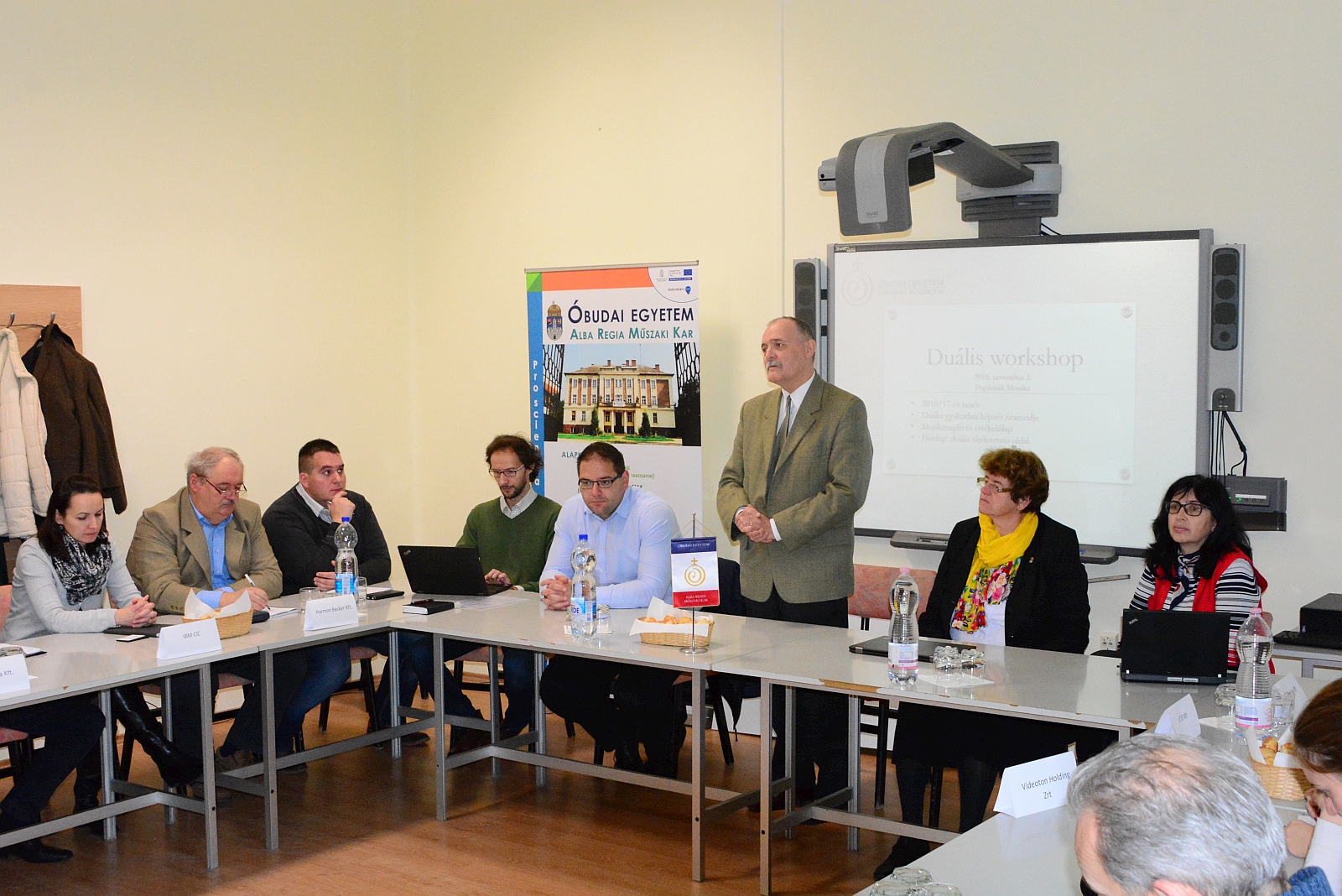 Földmérő és földrendező mérnök, gépészmérnök, mérnök informatikus, műszaki menedzser, villamosmérnök alapszakok duális képzéseinek tapasztalatairól és feladatairól volt szó az Óbudai Egyetem Alba Regia Műszaki Karának duális workshop-ján. Elhangzott, hogy idén november 28-án lesz a Felsőoktatási Expo az Alba Regia Sportcsarnokban, ahol a 2017-es duális képzéseket, céges partnereket, valamint a felsőoktatási intézményeket ismerhetik meg a székesfehérvári és és környékbeli középiskolások.