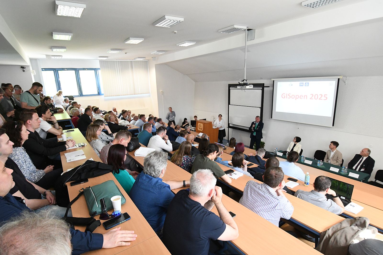 A GISopen résztvevőit V. Németh Zsolt, az Energiaügyi Minisztérium víziközmű-ágazatért felelős államtitkára is üdvözölte, aki saját bevallása szerint 40 évvel ezelőtt végzett a geoinformatikai intézetben, s mint mondta, nagyon sok olyan könyvet vett itt, Székesfehérváron a kezébe, amely meghatározta a gondolkodását, világlátását is. Hozzátette, a földmérés ma már nem csak az Agrárminisztériumhoz tartozik, hanem számos más területen, így például a vízügynél is dolgoznak geodéták.
