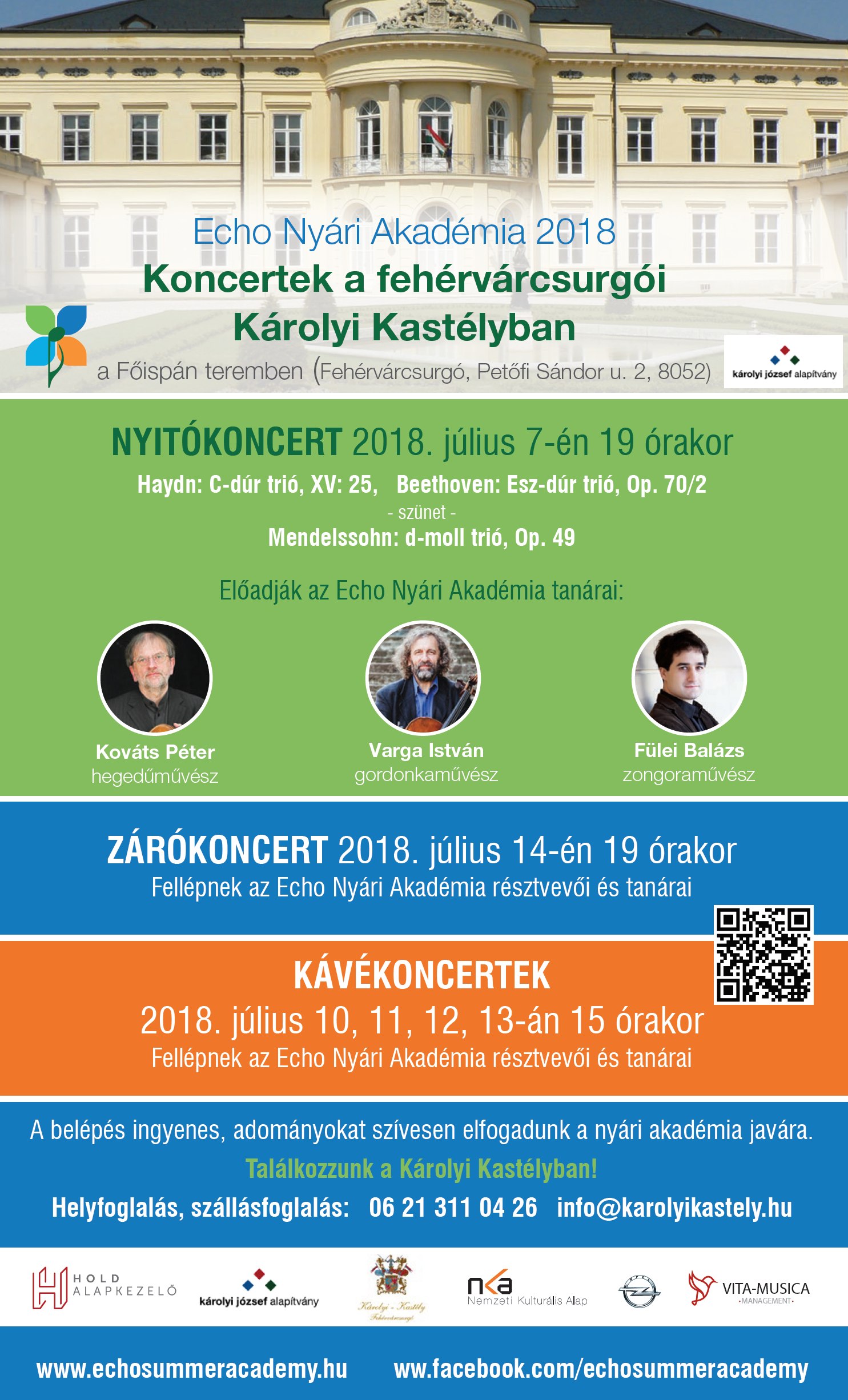 A kurzus programját tavaly óta „Kávékoncertek” is színesítik, amelyek július 10-én, 11-én, 12-én, és 13-án, délután 3 órától meglepetés-műsorral várják a látogatókat a kastélyban.