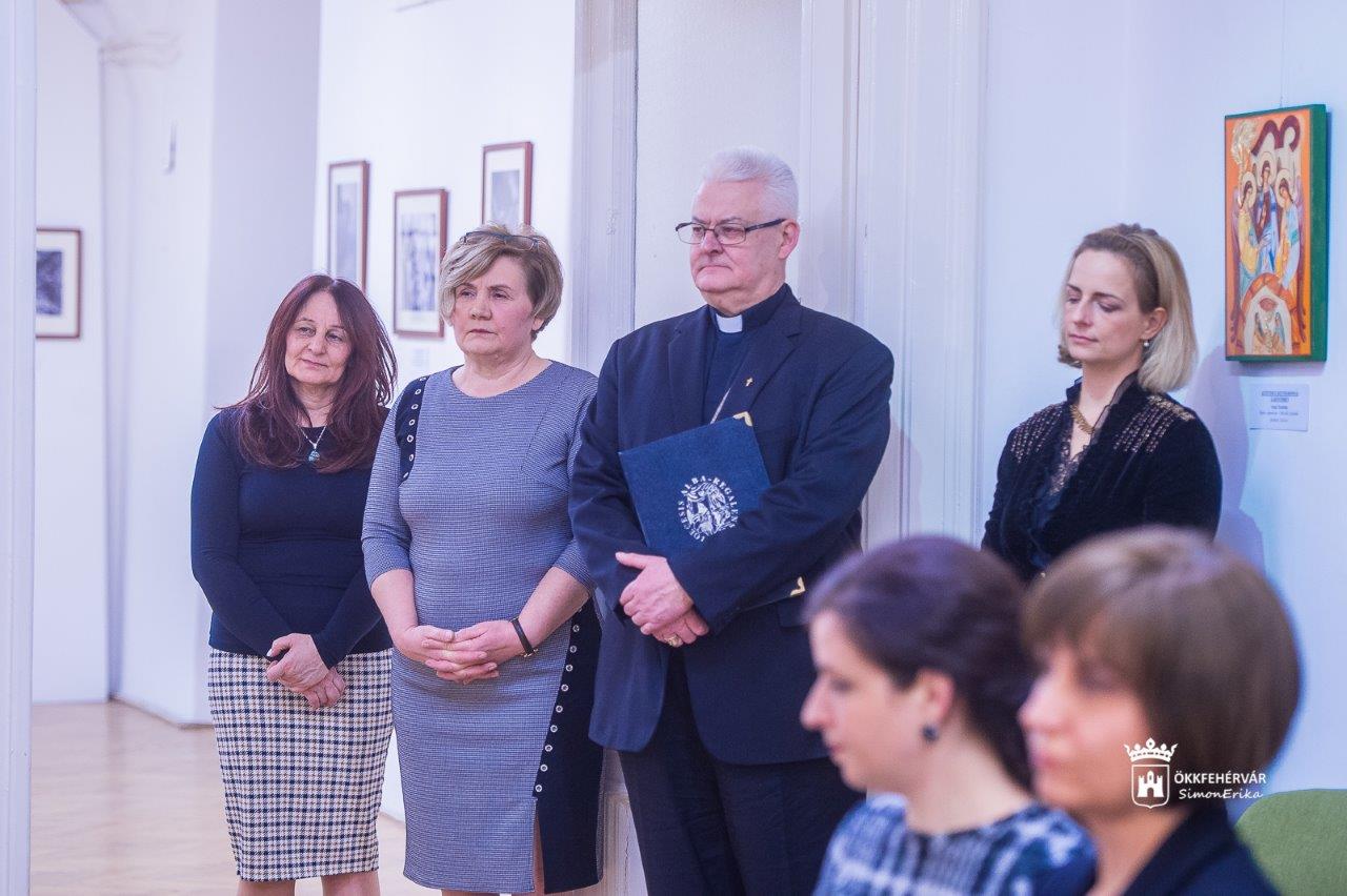 Ez egy vándorkiállítás és nagyon hálásak lehetünk Józsa Judit, kerámiaszobrásznak, a Magyar Kultúra Lovagjának, hogy fontosnak tartotta, hogy a tárlat egyik állomása Székesfehérváron, a Szent Korona Galériában legyen.” - emelte ki köszöntőjében Jakubek Tiborné, a Szent István Hitoktatási és Művelődési Ház igazgatója.