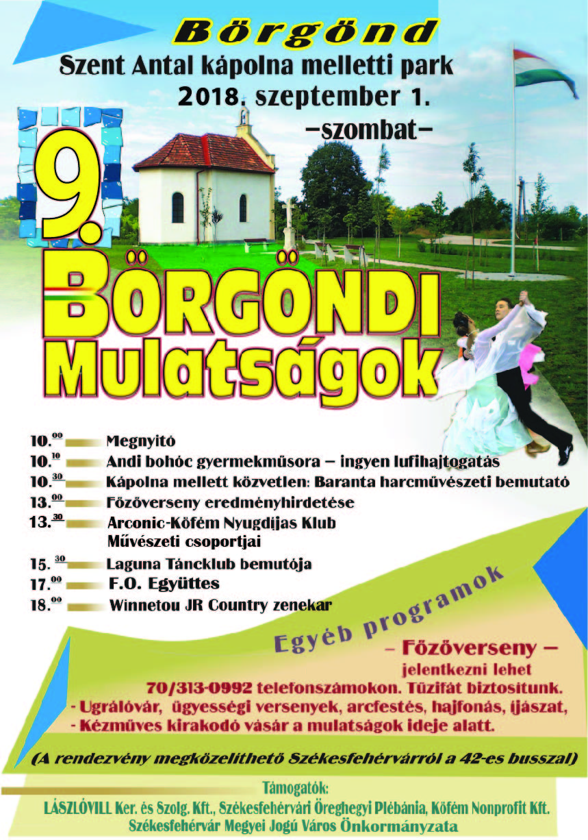 A 9. Börgöndi Mulatságokon tölthetik a szombati napot a városrész lakói: szeptember 1-jén 10 órától kezdődnek a családi programok a Szent Antal-kápolna melletti parkban.