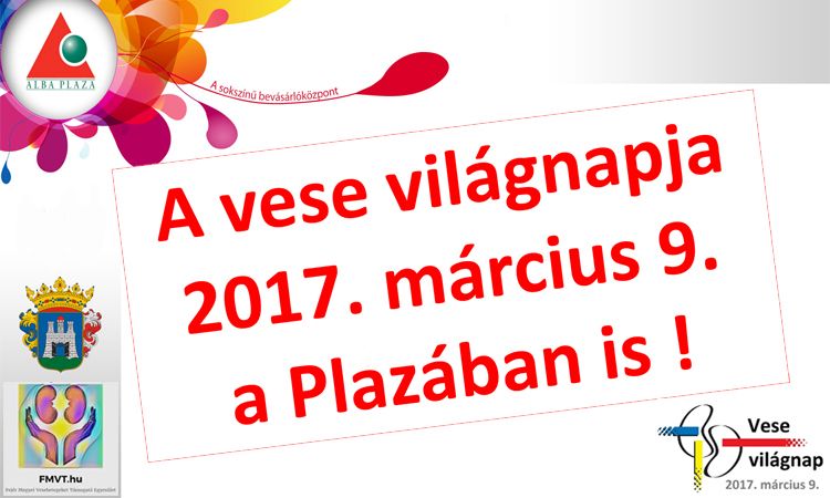 A vesebetegség és az elhízás a központi téma idén a vese világnapján. Március 9-én, csütörtökön 10 és 14 óra között az Alba Plazában várják az érdeklődőket különböző szűrővizsgálatokkal és tanácsadással. A szakemberek felhívják a figyelmet az elhízás káros következményeire és annak a vesebetegségekkel kapcsolatos összefüggéseire hangsúlyozva az egészséges életmód és az azt támogató intézkedések fontosságát.