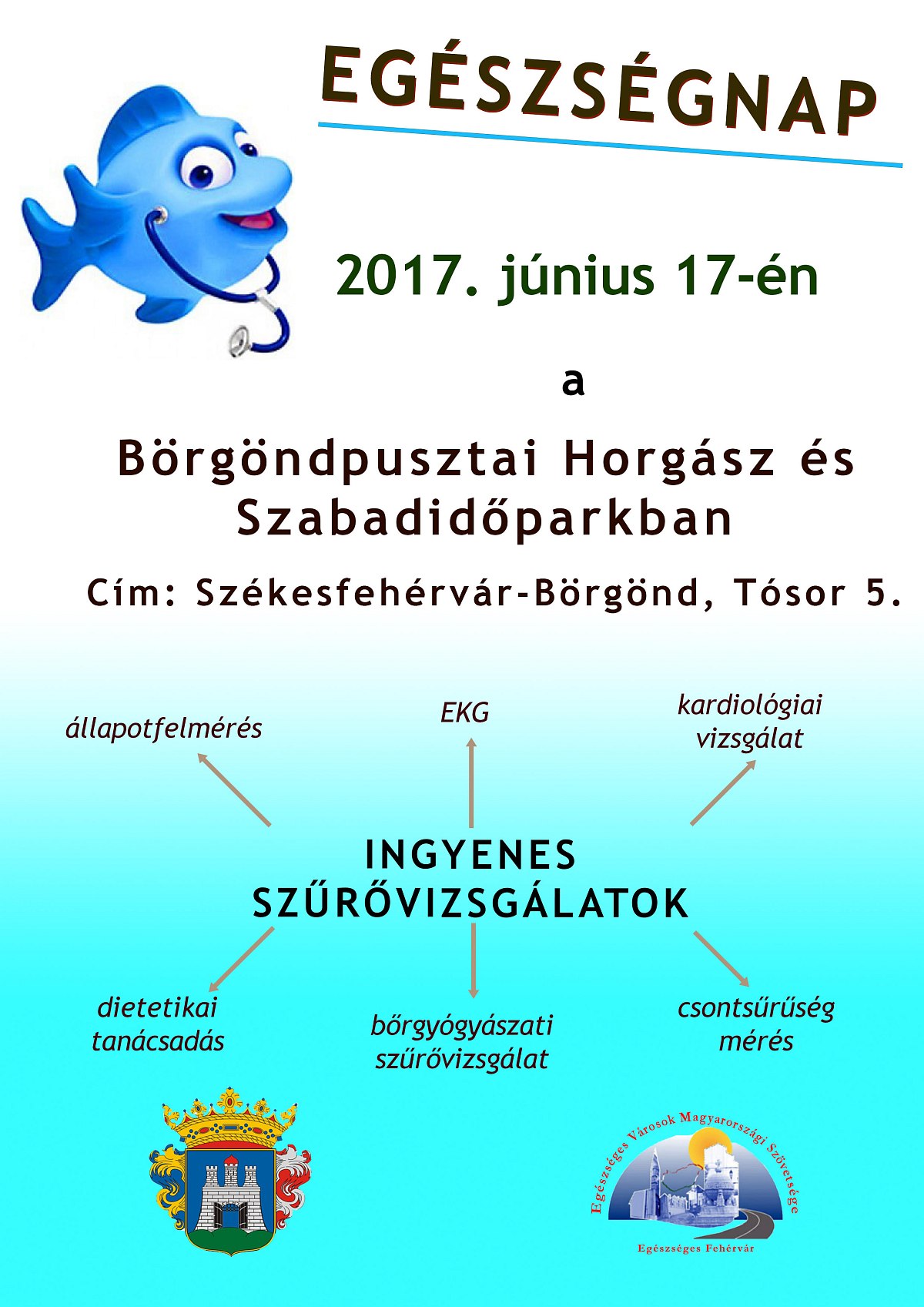 Mindenkit szeretettel várnak a Börgöndpusztai Egészségnapra 2017. június 17-én, szombaton 09.00 és 13.00 óra között, a Tósor 5. szám alatti Horgász- és Szabadidőparkban.