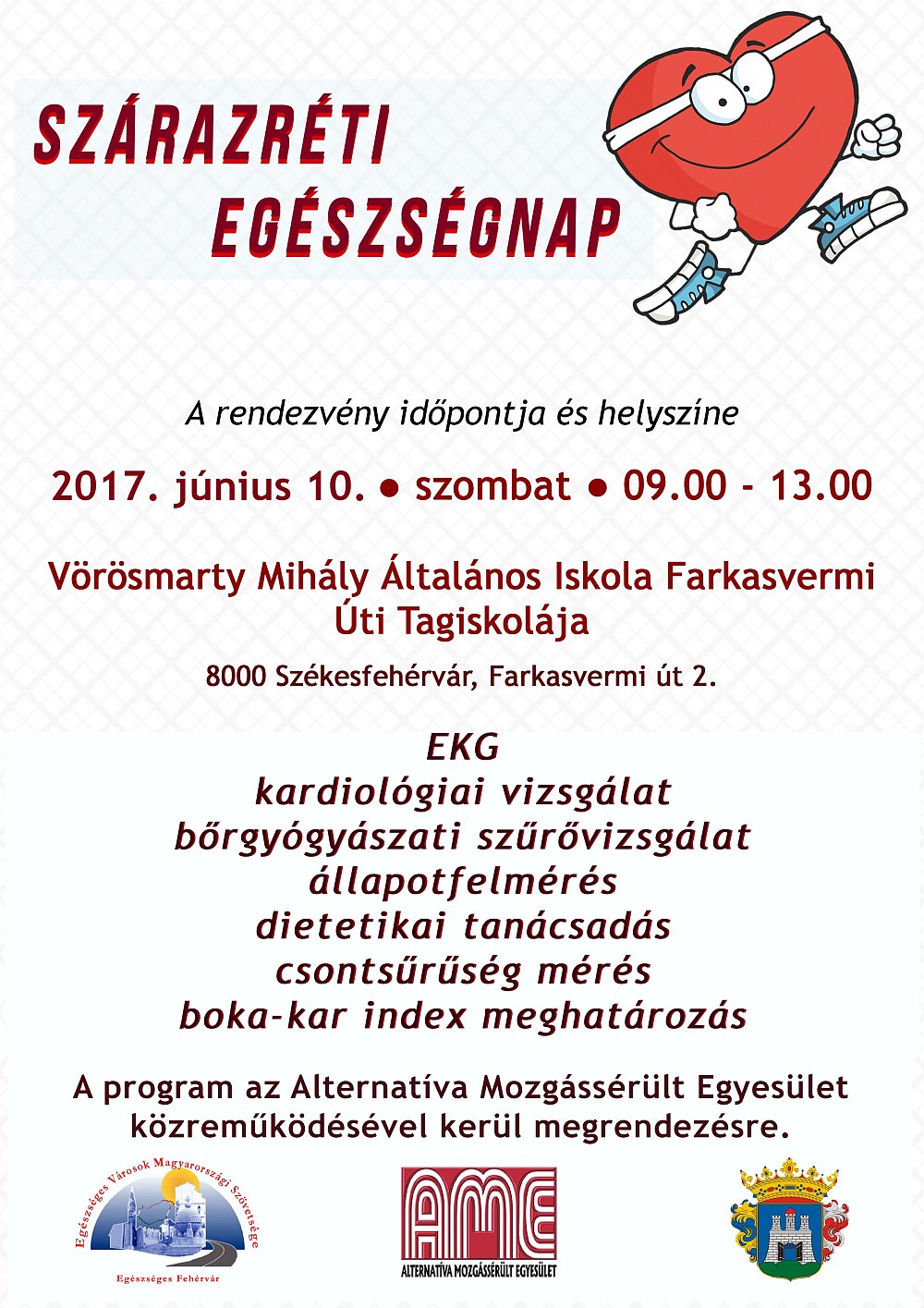 Vizsgálatok: EKG, kardiológiai vizsgálat, bőrgyógyászati szűrővizsgálat, dietetikai tanácsadás, csontsűrűség mérés, boka – kar index meghatározás. A program ingyenes, minden érdeklődőt szeretettel várnak!