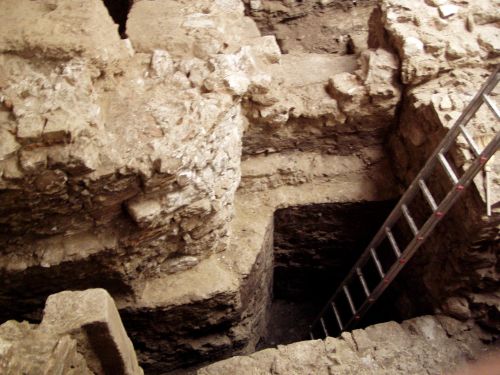 A volt nagymedence mellett akkor egy 13. századi várfal húzódott, a mai szinthez képes milyen mélyen dolgozhattak a várfalon az építők?
