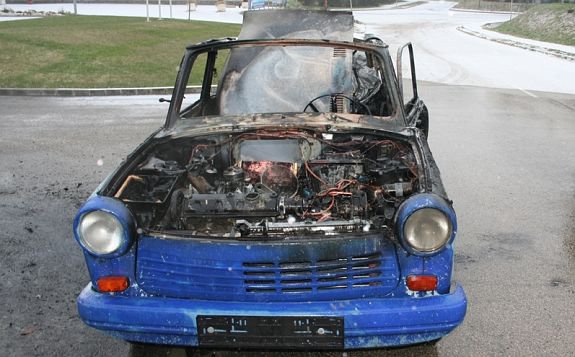 Egy gázos Trabant gyulladt ki vasárnap a Palánkai utcában