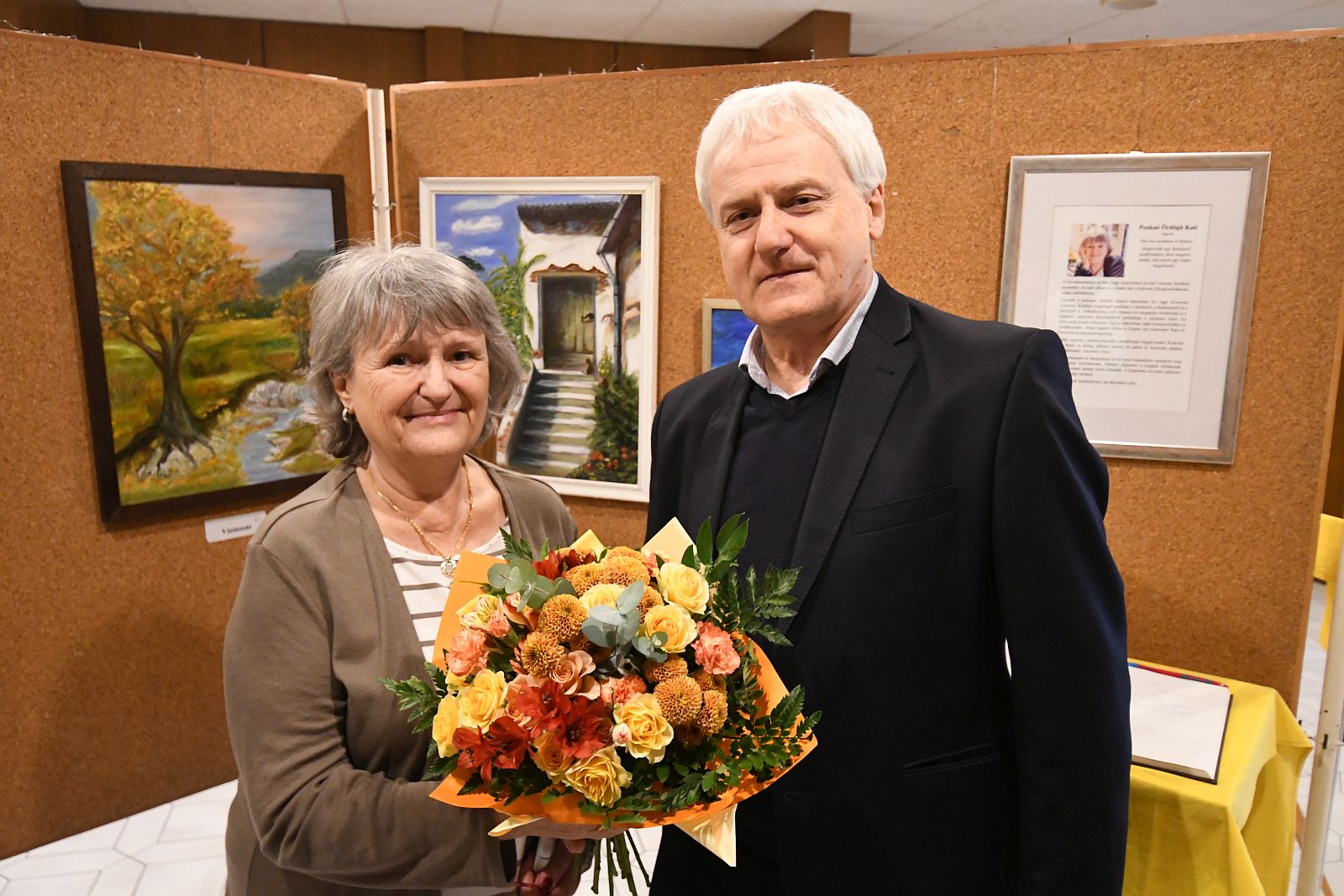 „Nagyon szeretném, hogy az alkotásaim ne csak nekem, hanem másoknak is örömet okozzanak. Ezért döntöttem úgy, hogy tizenhat festményt ajándékozok az idősotthonban élők és a sérült gyermekek számára: ha a képeim egy perc örömet okoznak valakinek, már megérte!” – tette hozzá a festő, aki ezt követően Simon Józseffel, a Köfém Művelődési Ház igazgatójával közösen, jelképesen átadta az alkotásokat a két intézménynek.