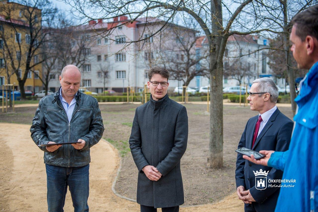 A burkolatokra, növényzetre is ráfért a felújítás: a III. Béla király téren a teljes parkfelújítás részeként 35 többször iskolázott, nagy körméretű ostorfát, hársfát, atlaszcédrust, juharfát ültettek a Városgondnokság parkfenntartó szakemberei. Megújul a szökőkút a téren és az új virágágy is mutatja már, hogy milyen szép lesz a park. Köszönöm, a kivitelezésben résztvevőknek a munkáját, melynek eredményeként egy nagyon szép megújult tér jött létre a városban – mondta Cser-Palkovics András Székesfehérvár polgármestere a hamarosan befejeződő beruházásról.
