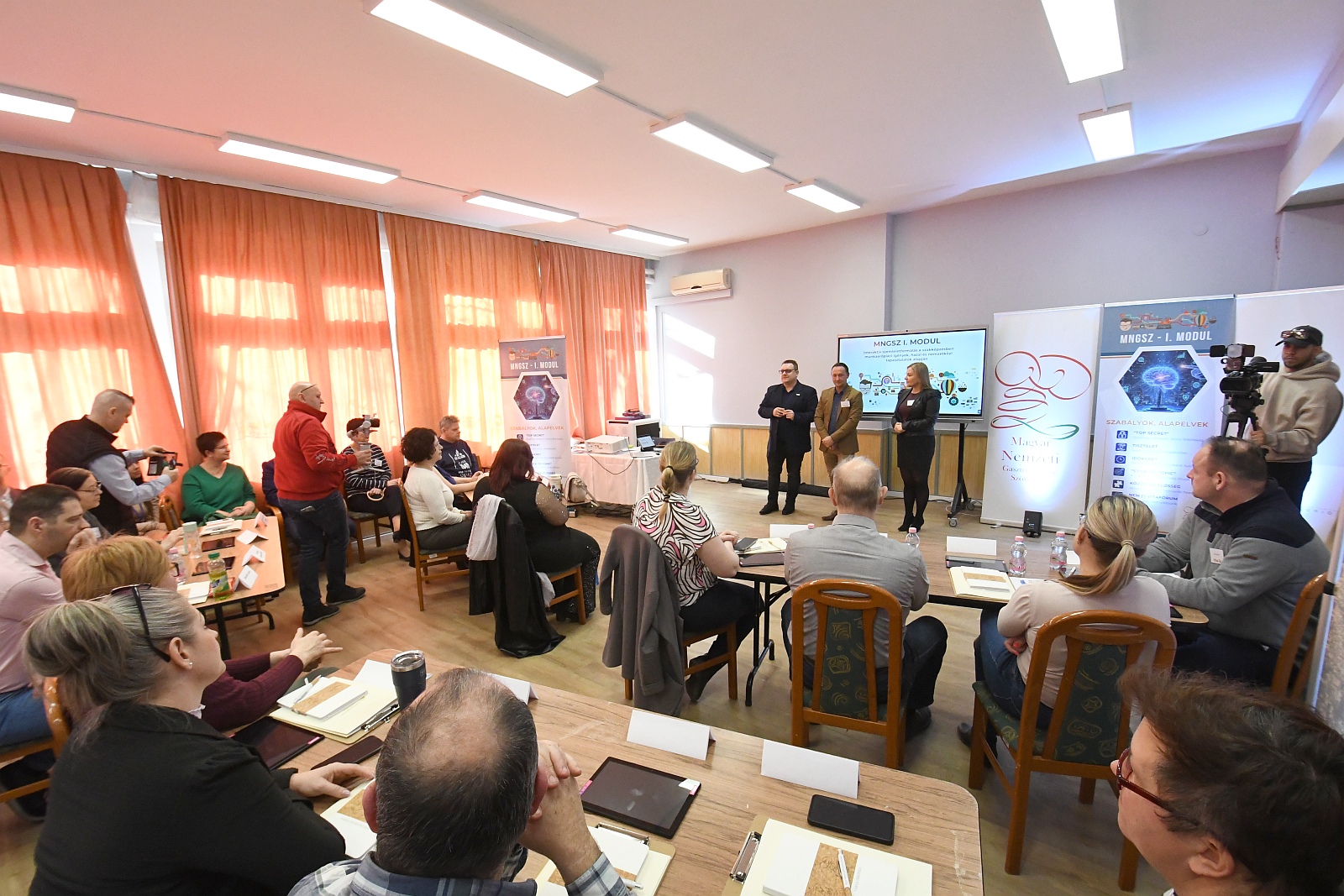 A csütörtöki alkalom egy hárommodulos képzés első megállója volt a Deák Ferenc Technikum és Szakképző Iskolában. A kettes modul egy teljes módszertani leírás, a hármas pedig már egy valóban gyakorlatorientált modul lesz, ahol 12 fős csapatokba osztják szét az oktatókat, és személyre szabottan adnak át számukra hasznos ismereteket.
