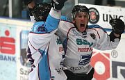 A szinte már teljesen elcsigázott fehérváriak a hosszabbításban csodát tettek, 27 másdoperc után Horváth András Vas Marcinak (a képen) tette le a korongot, aki a jobb alsó sarokba húzta a pakkot (3-4).