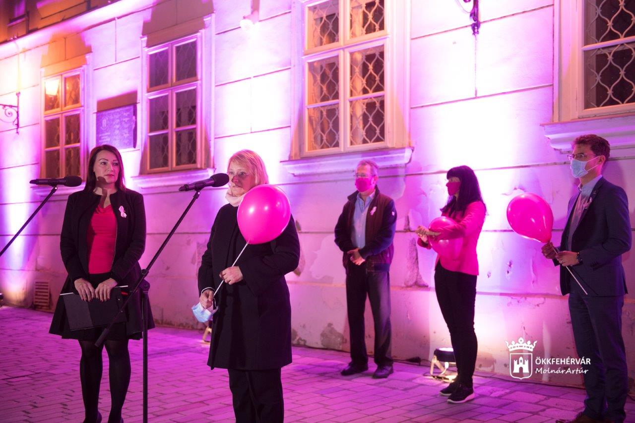 Székesfehérvár polgármestere a rózsaszínbe öltözött Városháza előtt tartott rövid köszöntőjében arra kérte a hölgyeket, éljenek a megelőző vizsgálatok lehetőségével.