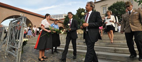 A jelenlévők egy-egy szál virág elhelyezésével rótták le tiszteletüket államalapító királyunk, Szent István szarkofágjánál, majd a Helyőrségi Zenekar mögött közösen sétáltak át a Szent István térre, ahol Székesfehérvár MJV Ünnepi Közgyűlését tartották.