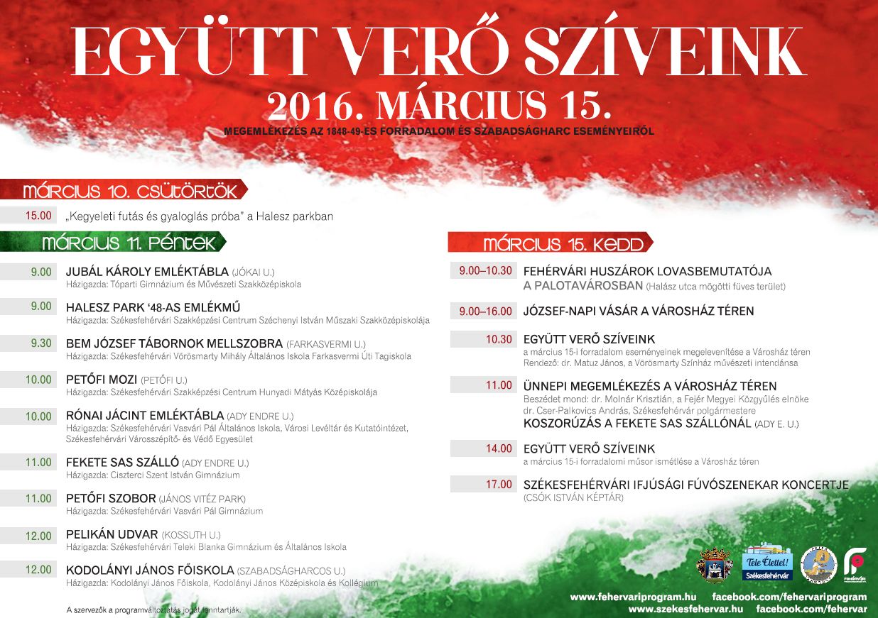 Együtt verő szíveink - programok Március 15-én Székesfehérváron