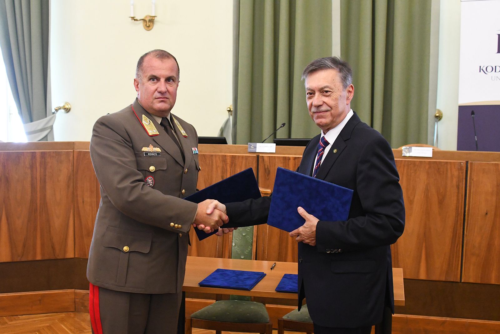 Dr. Kovács László vezérőrnagy, a Nemzeti Közszolgálati Egyetem tudományos rektorhelyettese arról beszélt, hogy bár a Közszolgálati Egyetem 12 éve jött létre, a jogelődök évszázados múltra tekinthetnek vissza. Állami egyetemként olyan hivatásrendeket képez, amik nem találhatók meg máshol. A katonák, rendőrök, közigazgatási és vízügyi szakemberek képzése nem egyszemélyes egyetemi munka, ez csak akkor működik, ha együttműködünk. A nemzetközi kapcsolatok mellett rendkívül nagy szükség van a hazai együttműködésekre is. Hangsúlyozta, hogy nagy kihívás lesz a tanárképző kar létrehozása, ami egyben óriási lehetőséget is ad a Közszolgálati Egyetemnek. Ehhez nagyon sok tapasztalatot adhat hozzá a Kodolányival való együttműködés.