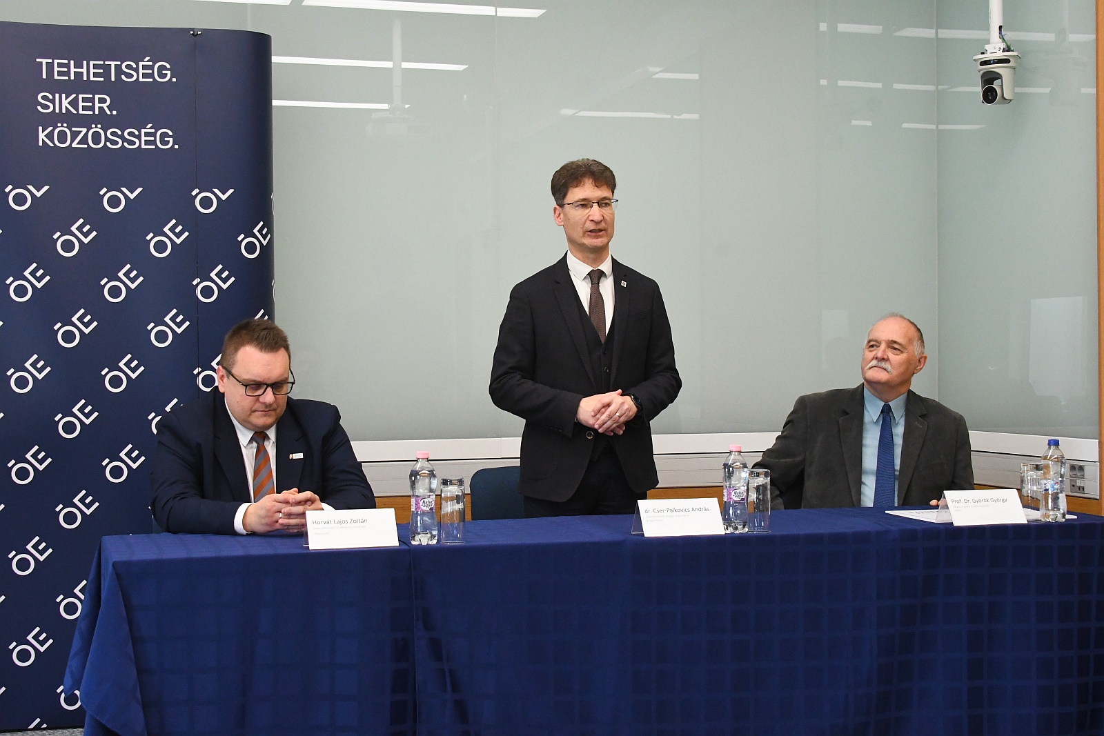 Az első, együttműködést hirdető táblát a Kar legrégebbi partnerének, a Széchenyi István Műszaki Technikum igazgatójának, Gulyás Zoltánnak adta át prof. dr. Györök György.