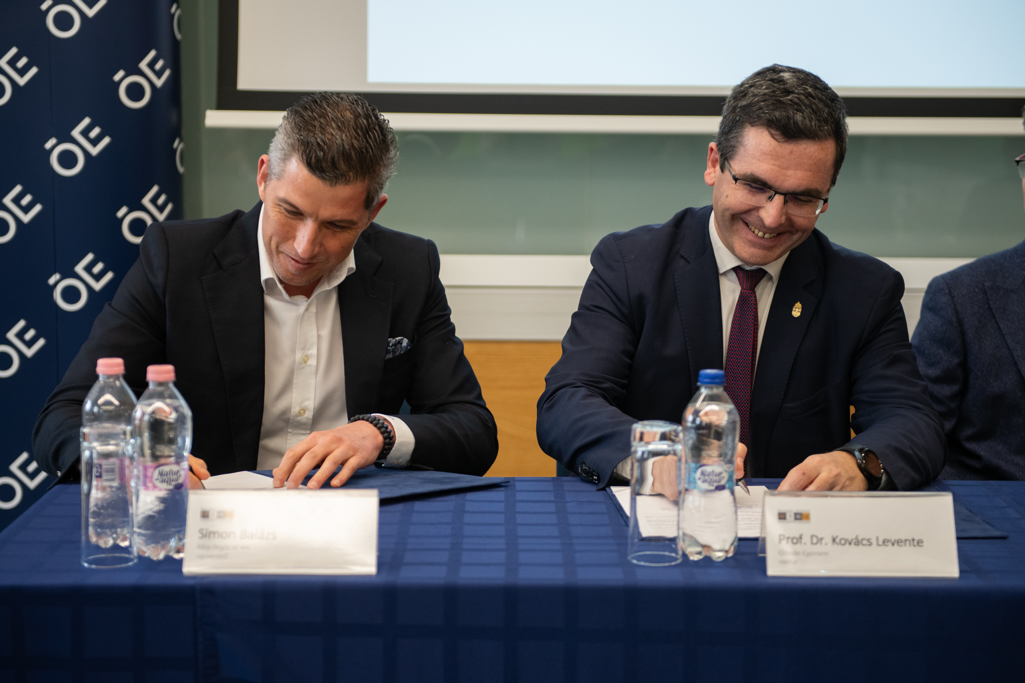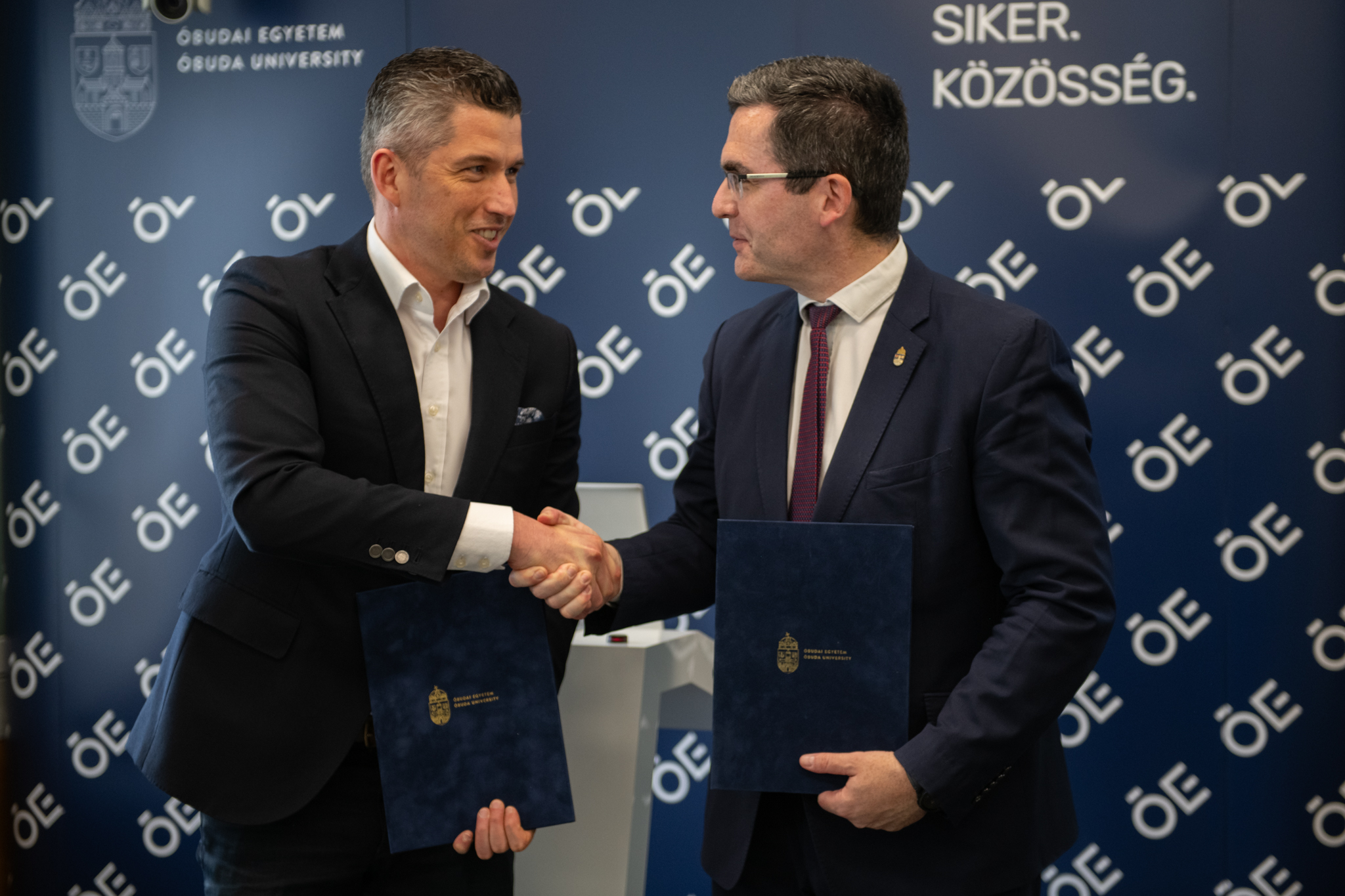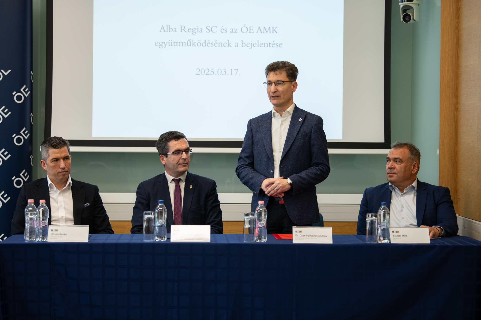 Az együttműködést a sajtótájékoztató végén ünnepélyes keretek között Simon Balázs, az Alba Regia SC Kft. ügyvezetője és prof. Dr. Kovács Levente, az Óbudai Egyetem rektora írta alá.