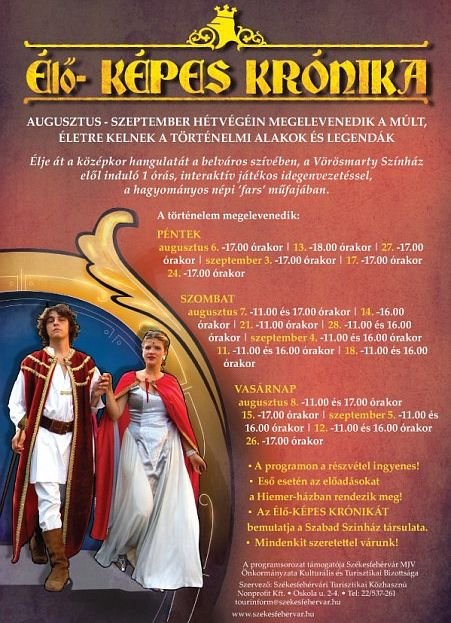 A Turisztikai Kft. szervezésében folytatódik Élő-Képes Krónika, amelyre a Kavalkád program- sorozatban kerül sor minden hétvégén. A szervezők szívből javasolják az alsó tagozatos általános iskolásoknak a programon való részvételt, hiszen ezen alkalmakkal egyedi megközelítésben ismerhetik meg a történelmi eseményeket. A Szín-Tér Egyesület a 21. századi gondolkodásmódhoz igazította ezt az ötletet, méghozzá olyan formában, hogy a turisták egyszerre, egy helyen és időben láthassák a krónikában már megrajzolt képeket, szereplőket, a ma is beazonosítható fehérvári helyszínekkel.