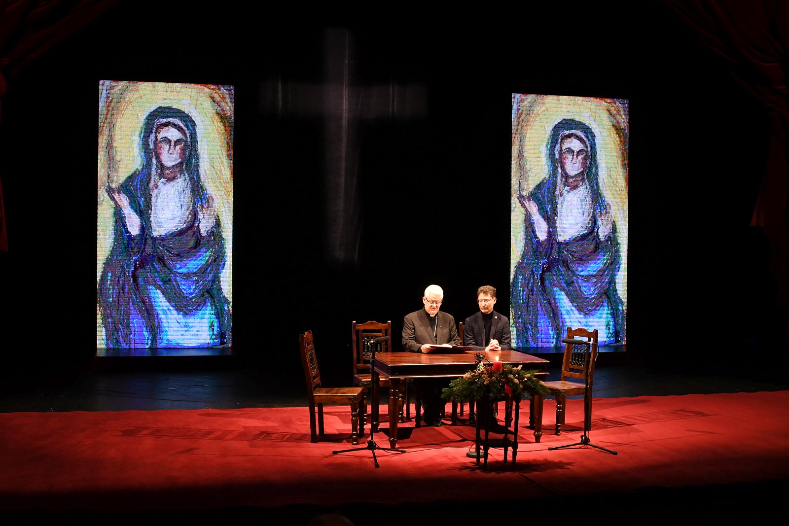 Szikora János színházigazgató elmondta, hogy a színpadon azok a gyermekrajzok láthatók a háttérben a felolvasás alatt, amelyet általános- és középiskolások számára hirdettek meg és Jézus élete által ihletett művek készítésére kérték a diákokat. A legjobb pályaművekből kiállítás is nyílt a Vörösmarty Színház galériáján. A rajzok láthatóak lesznek az egész adventi időszak alatt.