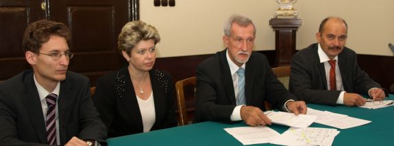 A Közgyűlés szünetében a város polgármestere és a frakcióvezetők közös sajtótájékoztatót tartottak az SZMSZ módosításával kapcsolatban. Warvasovszky Tihamér polgármester kiemelte, hogy az új Gazdasági Bizottságban a Közgyűlést alkotó frakciók fele-fele arányban adják a tagokat. Példaként említette a Pénzügi Bizottságot és több önkormányzati munkacsoportot, ahol bizonyítottan jól működik ez a rendszer. Dr. Csapó Csilla az SZDSZ részéről azt hangsúlyozta, hogy tisztább és átláthatóbb működésre lehet számítani az SZMSZ módosítása kapcsán. Dr. Cser Palkovics András a Polgári frakció nevében üdvözölte a Jogi és a Közbeszerzési Iroda létrehozását. Mint mondta áttekinthetőbb és tisztáb lesz a bizottsági struktúra működése, hiszen egy-egy ügyet minimálisan két bizottság tárgyal majd. Fontosnak nevezte a civil kontrollt az új SZMSZ-ben, miszerint állandó civil megfigyelők vehetnek részt zárt ülésen tárgyalandó naprendeknél. Rockenbauer Lajos az MSZP frakció részéről kiemelte, hogy a város költségvetése a 41 milliárd forintot is meghaladja: a fejlesztések kapcsán pedig szükség van a Közbeszerzési Irodára. Megerősítette a Polgári frakció vezetőjének azon kijelentését, miszerint nincs szó nagykoalícióról, mindössze a város működtetésének biztonságosságáról született megegyezés.