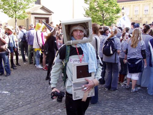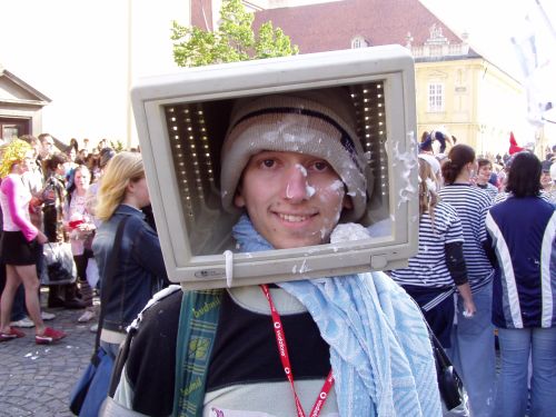 Szerkesztőségünknek az alábbi fiatalember öltözete tetszett a legjobban, nem titkolva a számítógépek és az informatika iránti elfogultságunkat. Gratulálunk az ötletes "jelmezhez"! Õ már fizikálisan is része az internetes kultúrának...