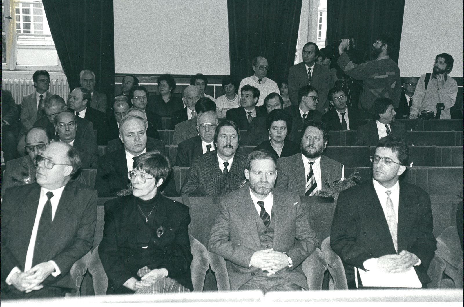 Horváth Istvánné az egykori Közgyűlés alakuló ülésén a Városháza Dísztermében.