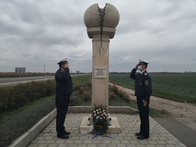 A Fejér megyei rendőrök képviseletében Vörös Ferenc rendőr ezredes, a megyei rendőrfőkapitány rendészeti helyettese emlékezett meg a Fejér megyei közúti baleseti emlékhelynél.