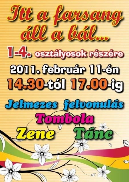 Az intézményben közben készülnek a farsangra. Az alsó tagozatosok február 11-én, pénteken 14.30 perctől 17 óráig ünnepelnek, lesz jelmezes felvonulás és tombola. A felső tagozatosok farsangi bálját egy héttel később, február 18-án tartják.