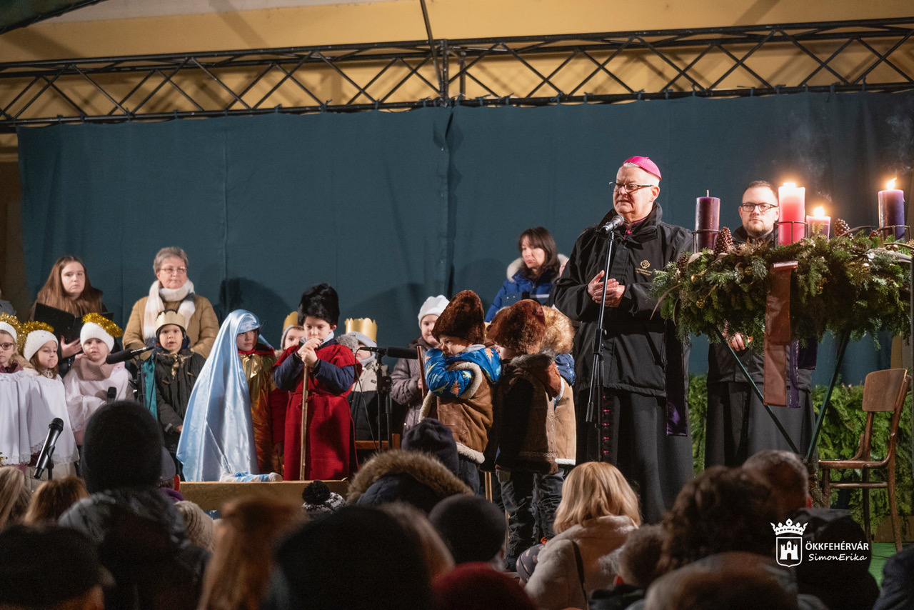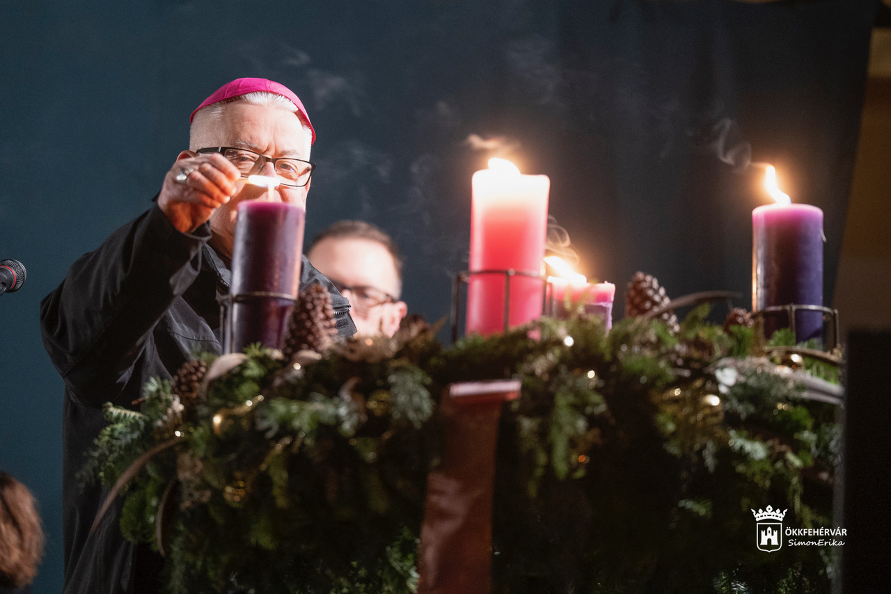 Szombat késő délután a Székesfehérvári Szent Imre Gimnázium, Általános Iskola és Óvoda gyermekeinek szívet melengető műsora után Spányi Antal megyés püspök meggyújtotta a szeretet gyertyáját az adventi koszorún. Az ünnepi adventi gyertyagyújtás közös imádsággal és énekléssel zárult.