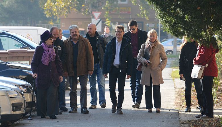 A Víziváros önkormányzati képviselője Horváth Mikósné, a város polgármesterével Cser-Palkovics Andrással, a városgondnokkal Bozai Istvánnal és a kivitelezővel közösen tartottak bejárást a megújult parkolóhelyek műszaki átadása előtt.