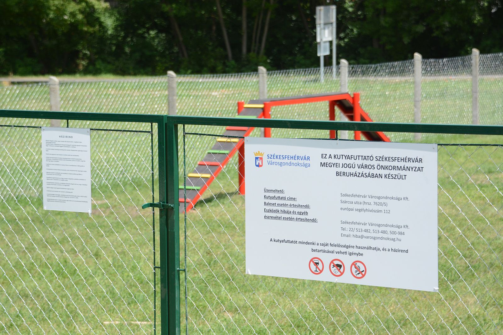 A régi vadhálós kerítés elbontása után betonoszlopos drótkerítést építettek a játszótereken is megszokott bejárattal. A kutyákkal való játékhoz pedig eszközöket telepítettek és két pad, illetve szemetes is került az új agility pályára. Ősszel pedig természetesen fákat is telepít a Városgondnokság.