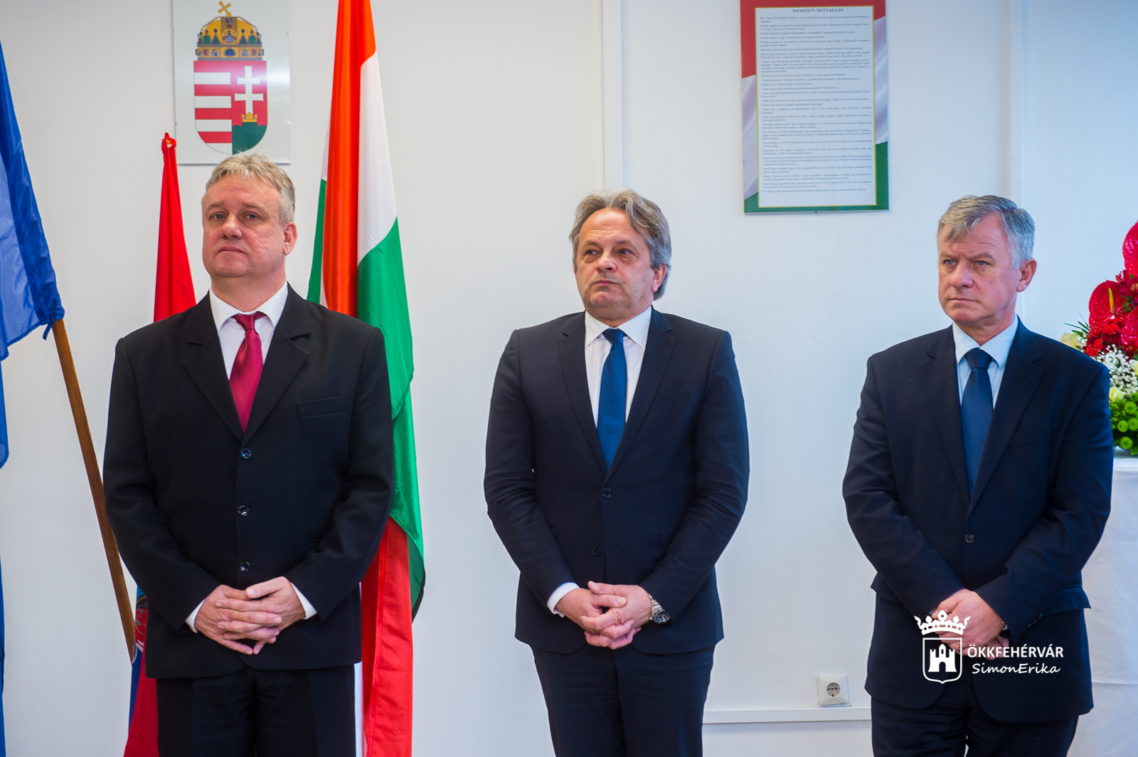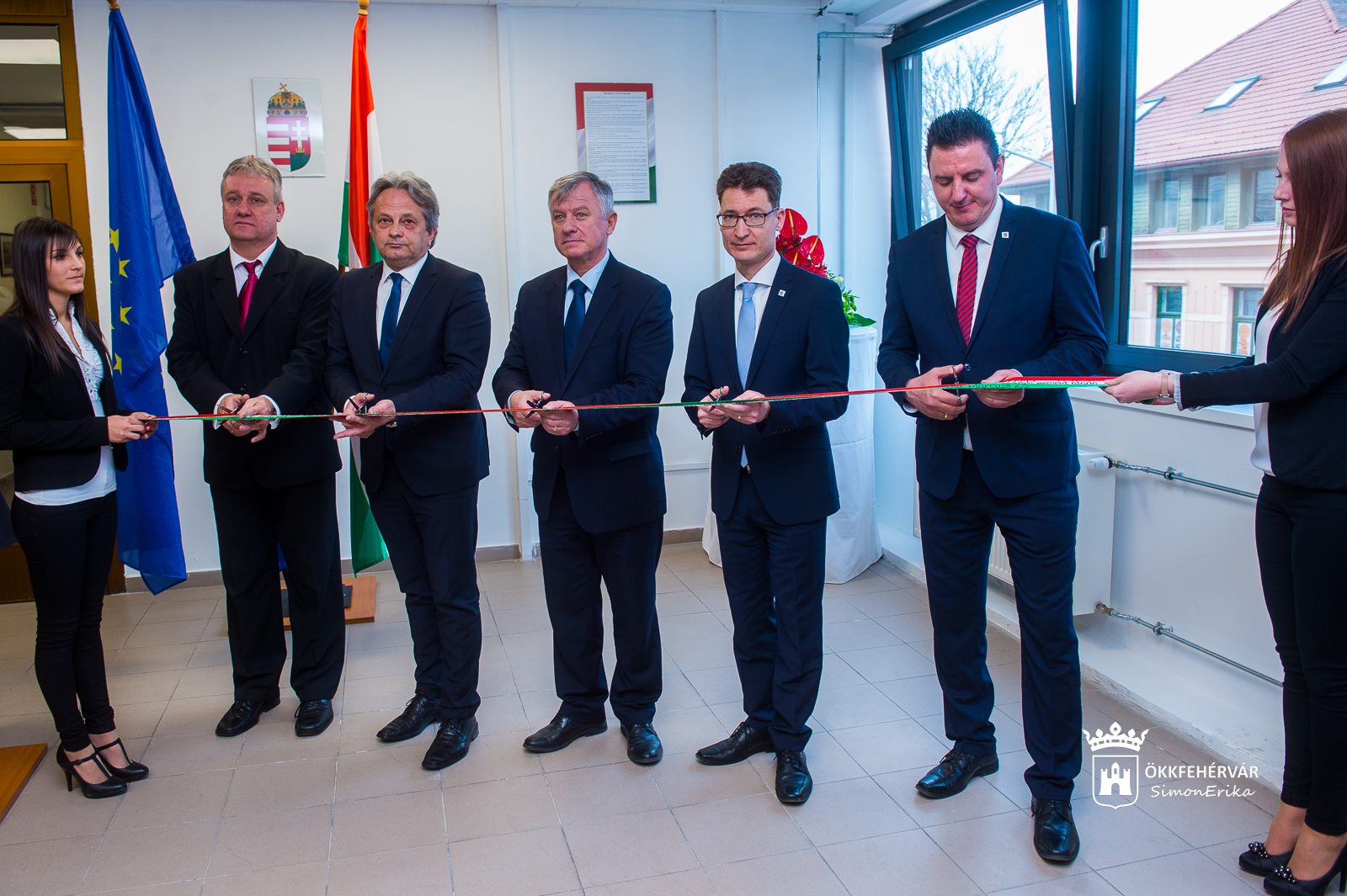 Az ünnepség végén Vargha Tamás, Törő Gábor, dr. Cser-Palkovics András, Dr. Simon László és Dancs Norbert, a Székesfehérvári Járási Hivatal hivatalvezetője közösen vágták át a nemzeti színű szalagot.