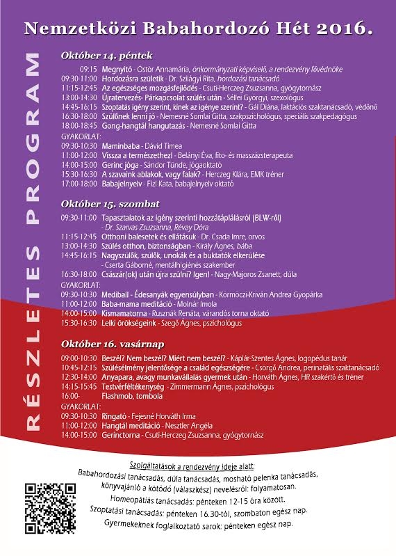 Dr. Szilágyi Rita, az Alba Babahordozó Egyesület vezetőségi tagja köszönetet mondott a szervezők nevében A Szabadművelődés Házának, hogy 2016-ban is otthont adott a három napos rendezvénynek, ahol előadások, gyakorlatok és hasznos tippek várják az érdeklődőket.