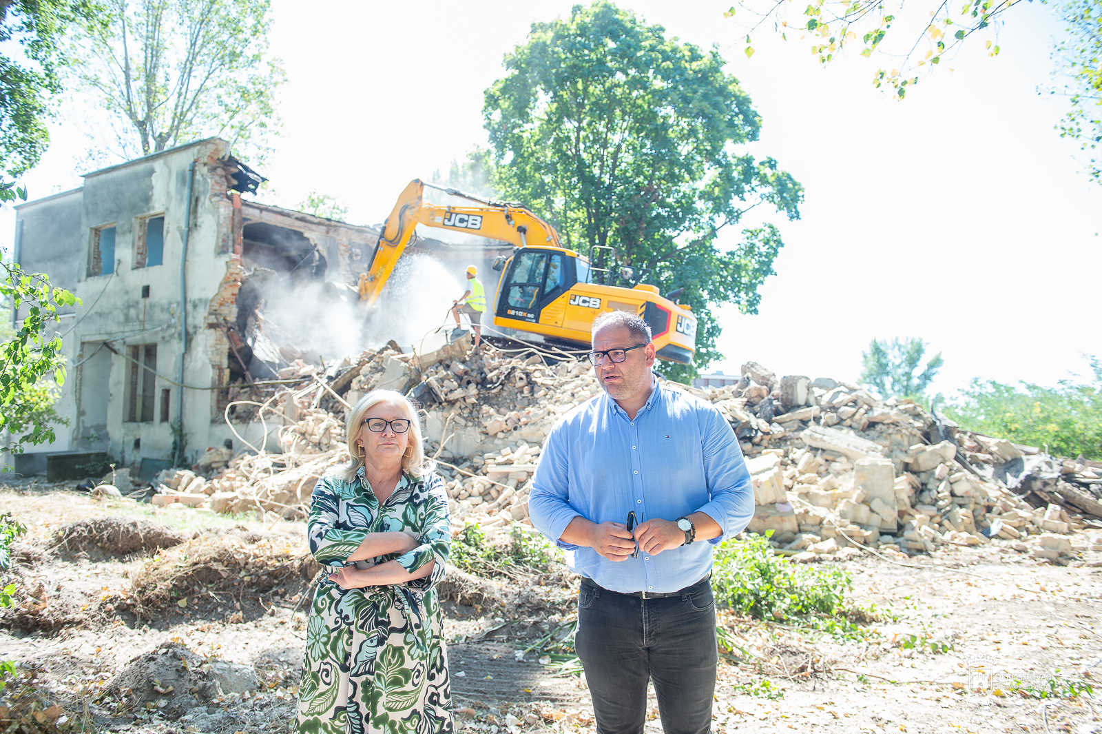 A Közgyűlés múlt pénteki döntésének értelmében az épületeket elbontják, a nagyszabású, sok zajjal és porral járó munka már hétfőn elkezdődött. Az egyik ház már darabjaiban feküdt a földön, a másiknál pedig a helyszíni sajtótájékoztató ideje alatt is javában folyt a bontás.