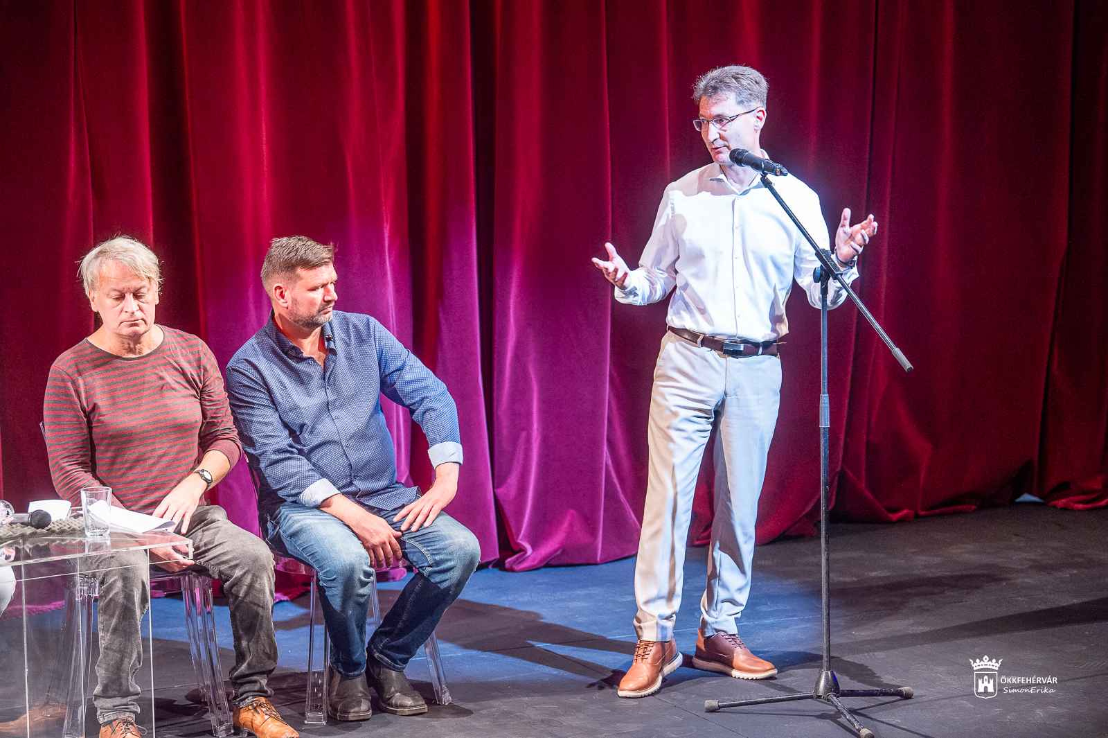 Németh Ákos, a Vörösmarty Színház művészeti vezetője elsősorban a jövőre tervezett új előadásokról beszélt röviden.