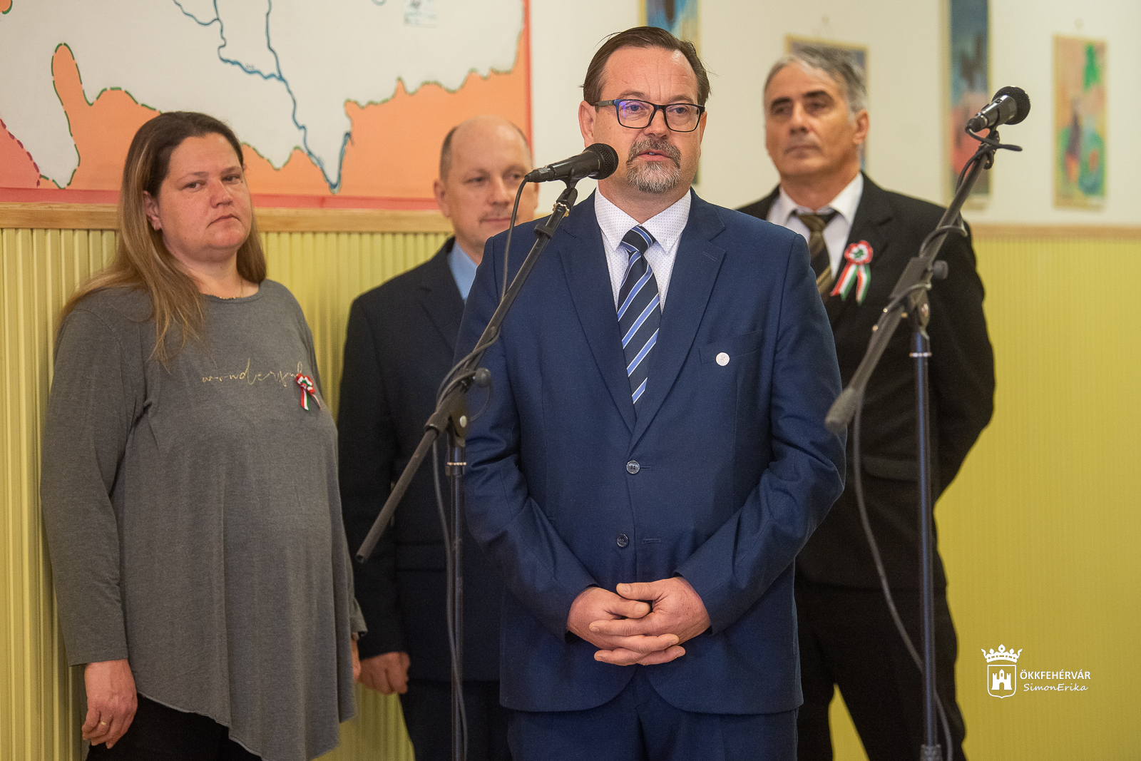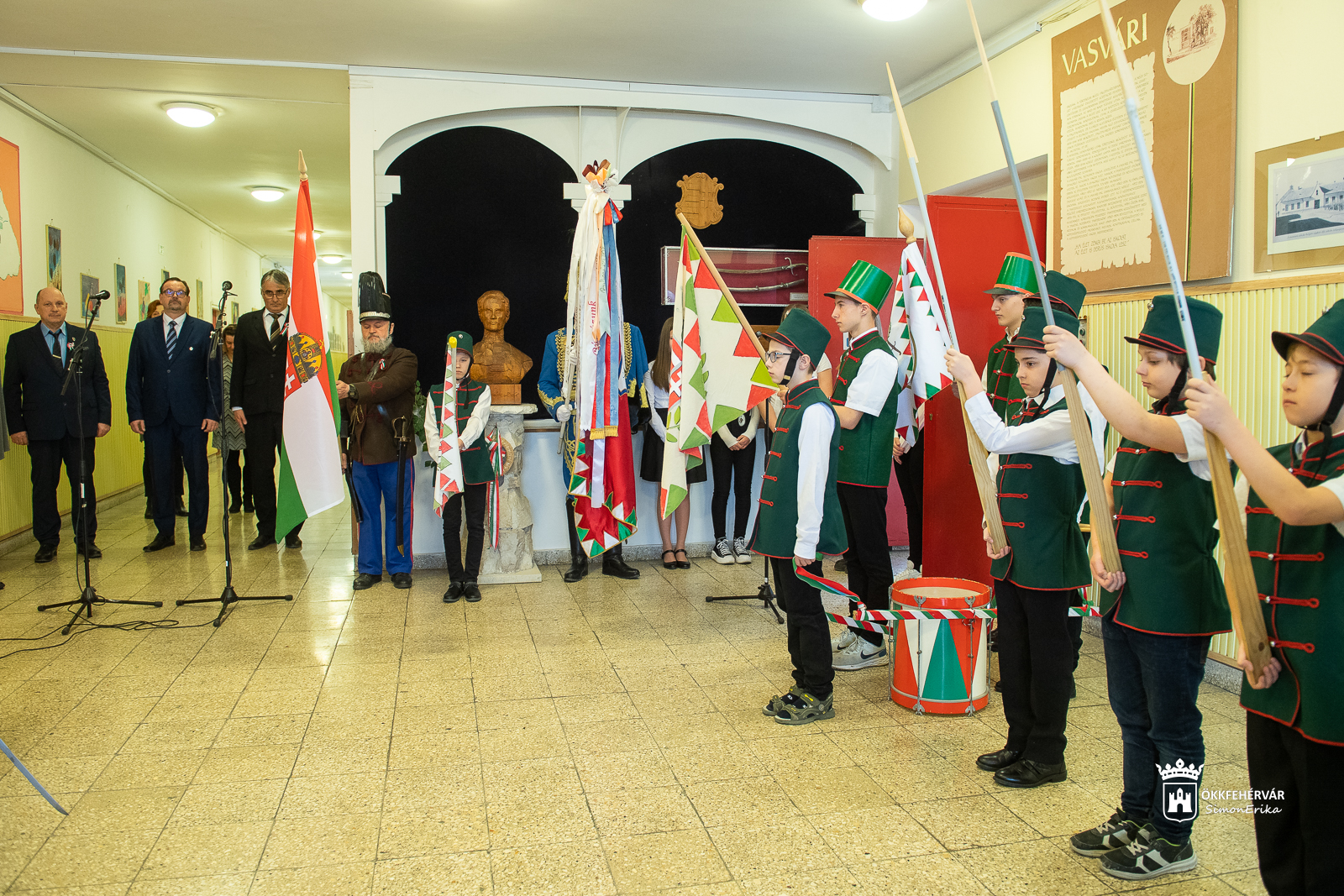 A Himnusz közös eléneklését követően a diákok adtak verses, dalos műsort, majd Laczkó Gábor, az iskola igazgatója tolmácsolta gondolatait. A nemzeti ünnepre készülve megemlékezett a márciusi eseményekről, hősökről, külön kiemelve Vasvári Pál életútját. Mint mondta, tehetséges fiatalember volt, akiből kiváló történész lett. Iskolái után megszólította a történelem, a márciusi ifjak vezéralakjává vált, nem csak szavakkal, hanem tettekkel is hirdette a szabadságharc eszményét. Mindössze 23 éves életútja alatt többet élt, mint mások akár 100 év alatt – fogalmazott az igazgató.