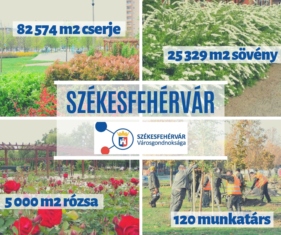 Jelenleg Székesfehérváron 82.574 négyzetméter cserje, 25.329 négyzetméter sövény és közel 5000 négyzetméter rózsa metszését végezzük. Ez nem kis terület, így például bár a rózsával még kicsit korán vagyunk, de muszáj elkezdenünk, mert nem érnénk a végére. Három nagy csoportban dogoznak a szakemberek, illetve van egy negyedik, mobilabb csoport, amely a kiemelt területeket metszi végig. Ez összesen közel 120 embert jelent, akinek a többsége már szakképzett dolgozó, hiszen korábban volt lehetőség oktatásra, és sokan elsajátították a szakmát. Egyébként a parkfenntartási csoport továbbra is várja a munkatársak jelentkezését.