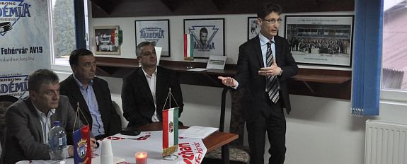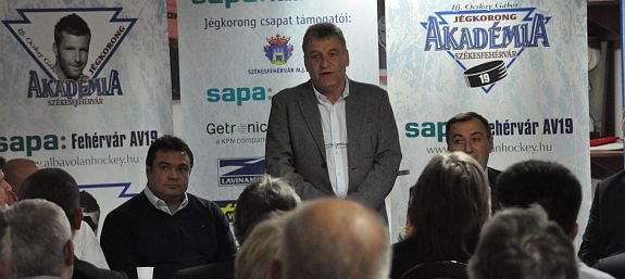 Õk pedig hasonló sablon mentén haladva vázolták eredményeiket – és gondjaikat. Ocskay Gábor kiemelte, az 1999 óta 12 bajnoki címet szerző hokicsapat ötödik éve az osztrák ligában bizonyít, mert a város vezetésével együtt úgy érezték, „nincs más út a sportág előtt, mint előre”. Nem kis terhet vettek vállukra az EBEL-szerepléssel, de idén minden idők legjobb eredményeként sikerült az ötödik helyen zárni (a zsinórban tizedik magyar bajnoki cím mellett). Két éve az akadémia keretében az utánpótlást is gardírozzák, és mára minden korosztályban bajnokok a fiatalok… A nehézséget természetesen az anyagiak jelentik, százmilliós a „lyuk a hajón”, mert 16 hónapig a felnőtt csapat büdzséjéből kellett az akadémiát finanszírozni. Ennek a lyuknak a befoltozása a következő hónapok legnagyobb feladata. Hogy csalogató számadatokat is mondjon a reménybeli támogatóknak, a szakosztály-igazgató beszélt a 2500 átlagnézőről, az 1700 bérletesről (köztük 500 nem fehérvári!), a 25 tévés meccsről. 90-100 szponzor áll a csapat mögött, legnagyobb a város, de keresik a továbbiakat. „Köszönjük, hogy itt vagytok, reméljük, lesz lehetőségetek, hogy mellénk álljatok” – mondta végül az egyesület tagjainak Ocskay Gábor.