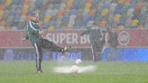 Hatalmas eső áztatta egész nap Lisszabont, a José Alvalade Stadion gyepszőnyege pedig megadta magát. Az óriási tócsákban nem pattant fel a labda, ezért a játékvezető úgy döntött, hogy nem rendezhetik meg a Sporting - Videoton találkozót az Európa-liga G-csoportjának záró fordulójában. Az UEFA már döntött is: egy nappal később, pénteken 21.05-kor lesz a meccs. Közben Genk-Basel 0-0, így a Vidi már nem végezhet továbbjutó helyen.
