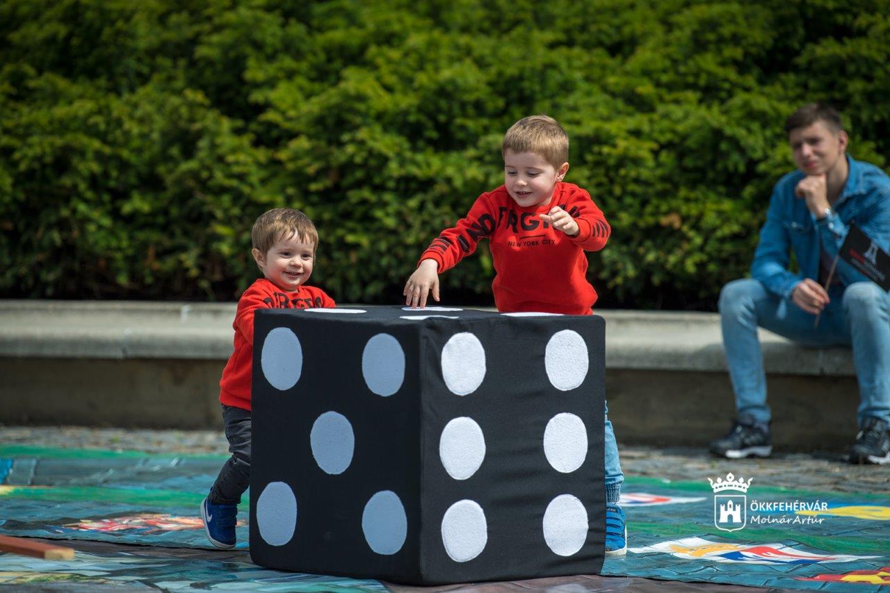 A gyerekek kardozhattak, nyomdázhattak és Szent Istvánnal illetve Gizellával lépkedhettek a hatalmas társasjátékon.