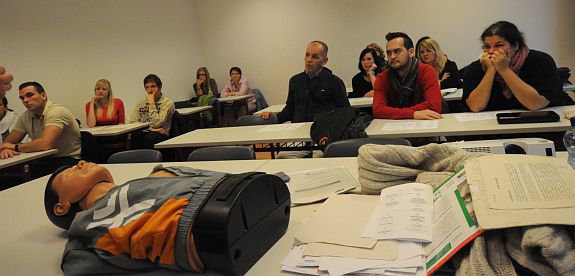 Oktatók, hallgatók és középiskolás diákok vesznek részt azon az elsősegélynyújtó tanfolyamon, amelyet a Humán Szolgáltató Intézet szervez Székesfehérvár Önkormányzatának kezdeményezésére, az Alcoa Alapítvány támogatásával. A gyakorlatközpontú, ingyenes elsősegélynyújtó tanfolyamokra közel százan jelentkeztek.