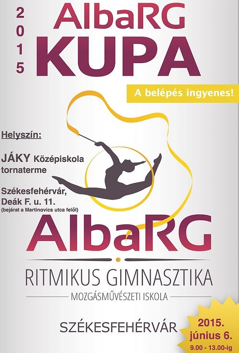 Június 6-án, szombaton először rendezik meg az AlbaRG Kupát Székesfehérváron. Az érdeklődőket reggel 09.00 órától egészen 13.20 óráig várják az a Jáky Középiskola (bejárat a Martinovics utca felől) tornatermébe. A versenyzők szabadidős kategóriában indulhatnak, eddig nyolc egyesület közel száz gyermeke jelezte részvételi szándékát a nívós sportprogramra. Az eseményre többek között Paksról, Budapestről, Velencéről, Komáromból is érkeznek ifjú sportolók. Összesen hat korcsoportban, egyéniben és csapatban is összemérhetik tudásukat az ifjú tornászok.