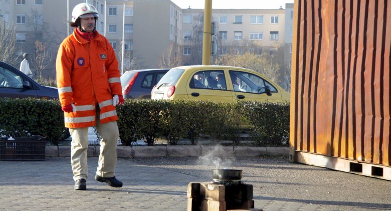 A rendezvényt a Fejér Megyei Katasztrófavédelmi Igazgatóság és a Fejér Megyei Tűzmegelőzési Bizottság közösen szervezte. Elsőként a fehérvári önkéntesek, Takács József tűzoltó alezredes vezetésével bemutatták, hogyan kell a meggyulladt étkezési zsiradékot helyesen eloltani és milyen otthoni módszerek állnak rendelkezésre ahhoz, hogy ne legyen súlyos égési sérülés és jelentős anyagi kár a tüzes kaland következménye. Ennek a legjobb módszere, hogyha fedővel vagy másik serpenyővel elzárjuk a tűz és a levegő közötti kapcsolatot, oxigén nélkül így az égés is megszűnik.