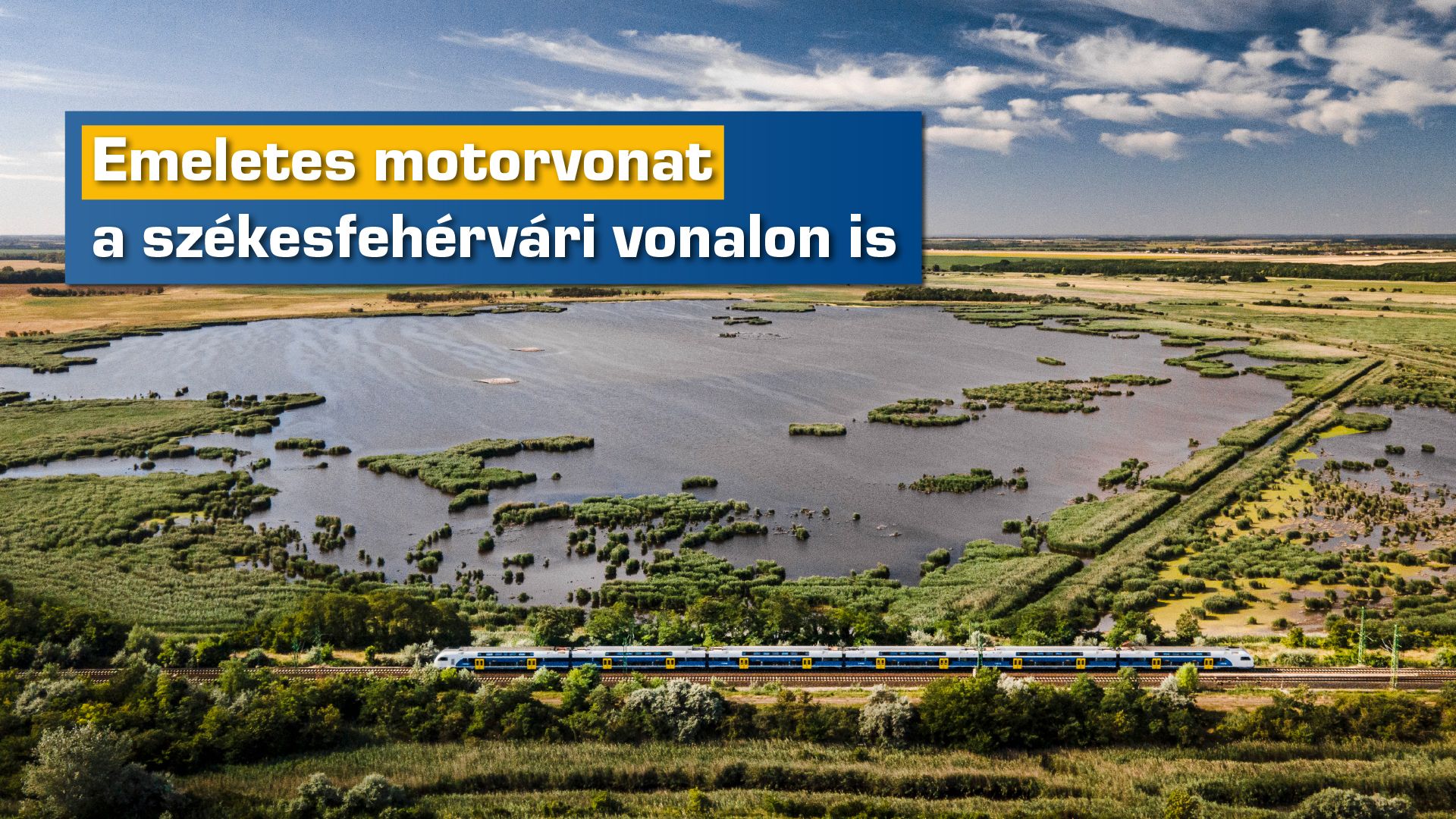 Emeletes motorvonat a székesfehérvári vonalon, a Velencei-tó térségében is