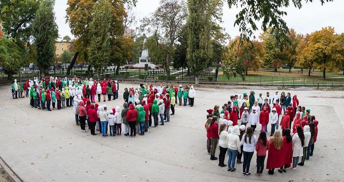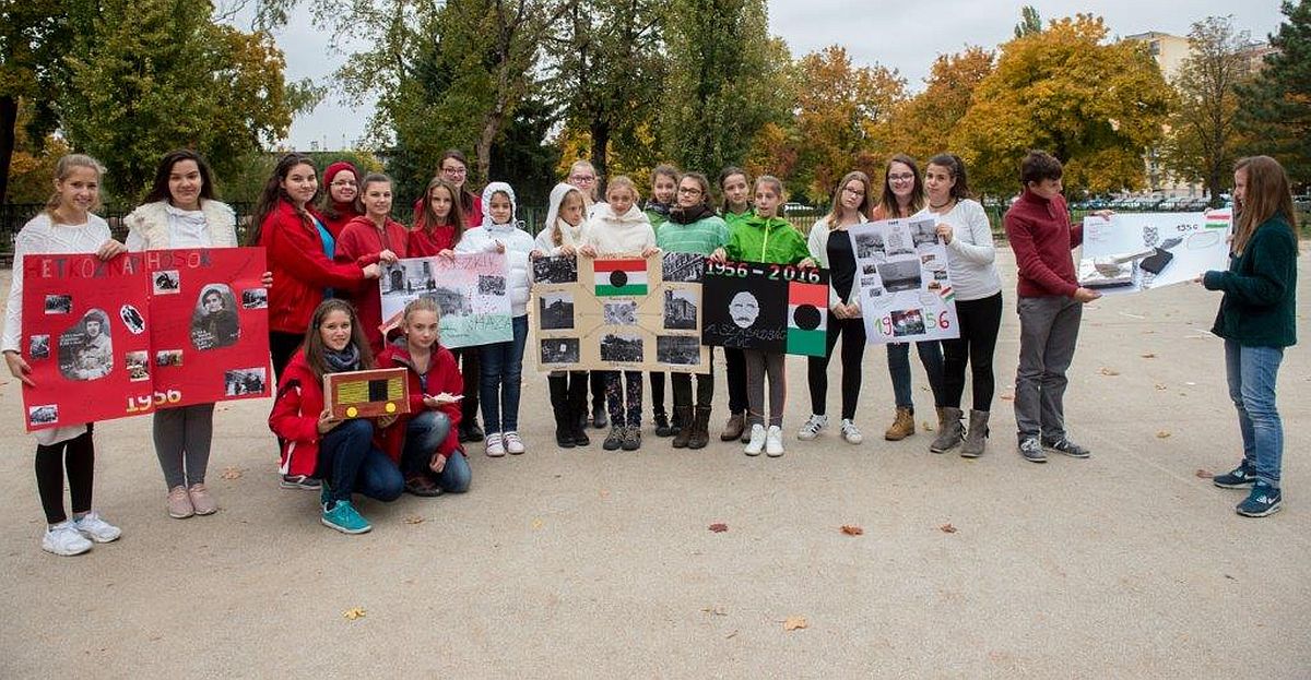 Az intézmény pedagógusai az elmúlt hetekben kiemelt figyelmet szenteltek annak, hogy minél közérthetőbb ismereteket adjanak át tanulóiknak az ’56-os forradalom és szabadságharcról. Az interaktív programok segítségével a diákok mély és tartalmas gondolatokat fogalmaztak meg a 60 évvel ezelőtti történelmi napokról. Kedden bemutatták a tematikus naphoz kapcsolódó rajzpályázat legjobb alkotásait, majd látványos élőképeket is megformáltak a diákok.