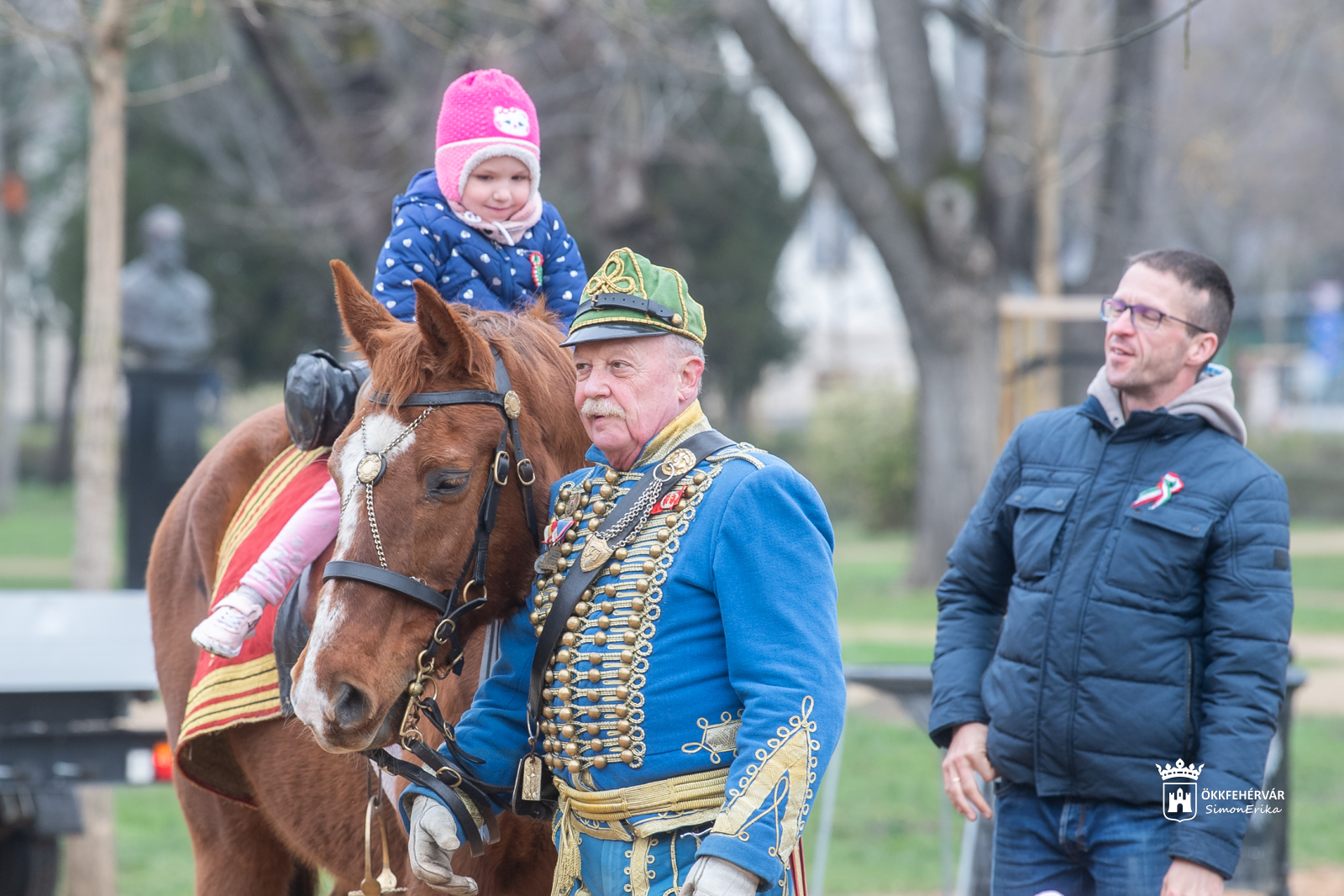 Vidám perceket tartogatott a Guliba Társulat is, „Huszárkodó" műsorunkban zenével, tánccal, huszárosan hangoltak kicsiket és nagyokat a nemzeti ünnepre. A programot a fehérvári fiatalok rövid műsora zárta: a Kossuth Lajos Általános Iskola harmadik osztályosa, Horváth Lili furulyázott és verset szavalt, majd a Jáky, a Kodolányi és a Németh László iskolák diákjai alkotta csapat az Egy szabad országért című dalra készült táncprodukciót mutatta be.