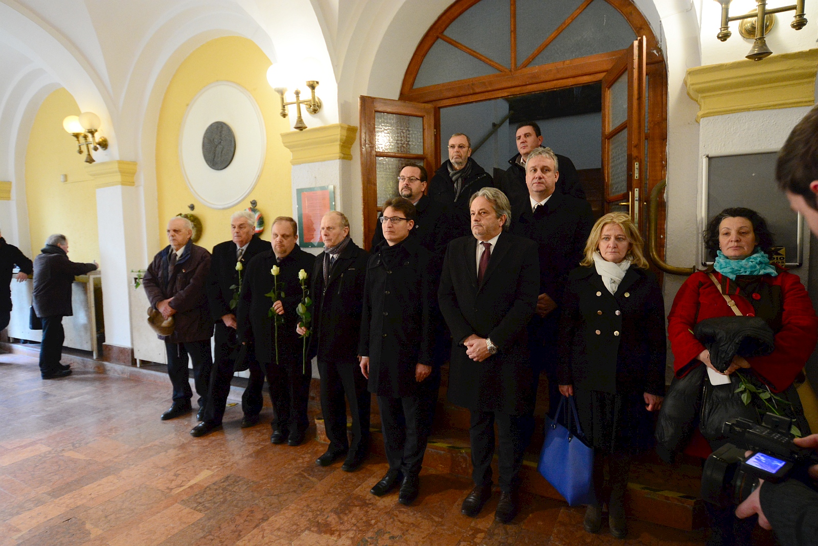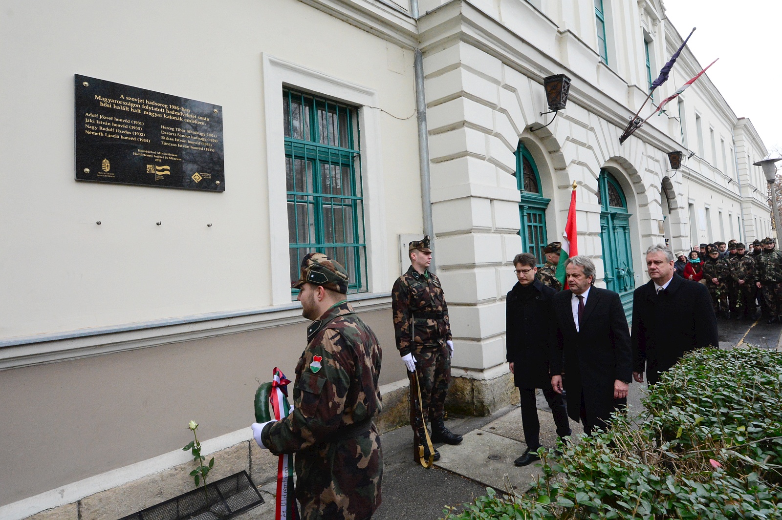 A beszédet követően Vargha Tamás honvédelmi-miniszterhelyettes és Cser-Palkovics András polgármester közösen leplezték le és koszorúzták meg a Helyőrségi Klub falán lévő emléktáblát, majd a fegyveres és rendvédelmi szervek, civil szervezetek és magánszemélyek helyezték el az emlékezés virágait.Az eseményen részt vett dr. Simon László kormánymegbízott, Brájer Éva alpolgármester, dr. Kovács Vilmos ezredes, a HM Hadtörténeti Intézet és Múzeum parancsnoka, Benda László ezredes, az MH 43. Nagysándor József Híradó és Vezetéstámogató Ezred parancsnoka, Szabó András ezredes, az MH Összhaderőnemi Parancsnokság parancsnoki irodavezetője, Sinka Jenő, az 1956-os Magyar Szabadságharcosok Világszövetsége Fejér megyei szervezetének elnöke, Csernai Ádám, a Politikai Foglyok Országos Szövetsége Fejér megyei szervezetének elnöke, valamint Székesfehérvár önkormányzati képviselői is.