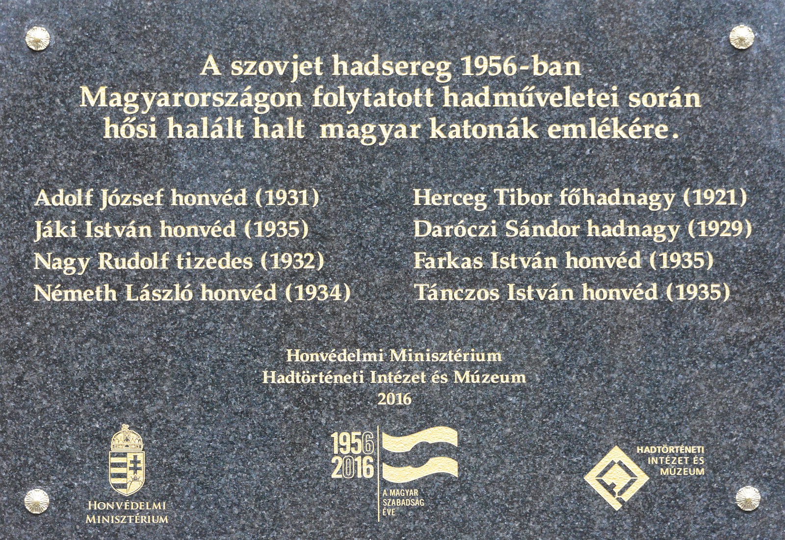 Székesfehérváron nyolc magyar katona esett áldozatául a szovjet inváziónak, emléküket most emléktábla őrzi 60 évvel haláluk után. Huszonéves fiatalok voltak: Herceg Tibor főhadnagy, Daróczi Sándor hadnagy, Németh László honvéd, Farkas István honvéd, Jáki István honvéd, Nagy Rudolf tizedes, Adolf József honvéd és Tánczos István honvéd.