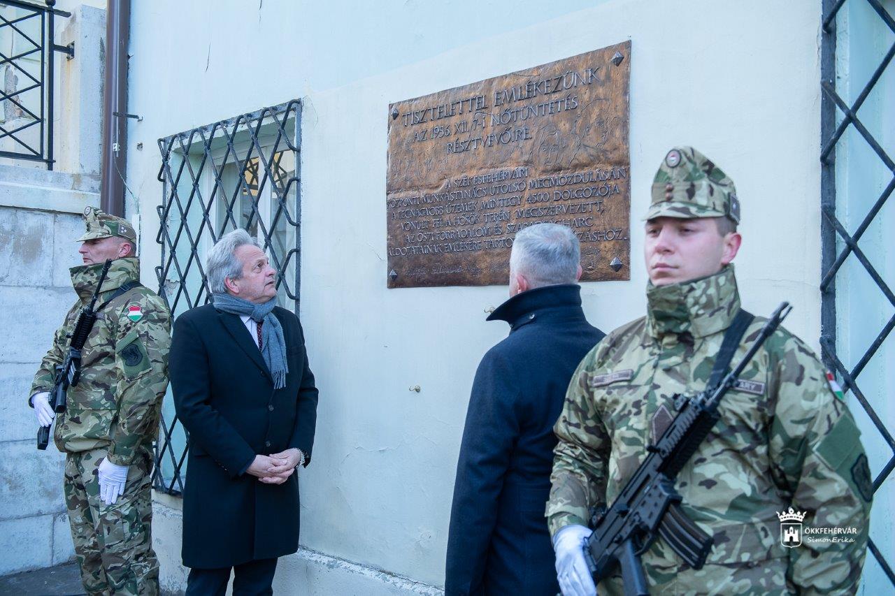 A táblát közösen koszorúzta meg Vargha Tamás, Törő Gábor, továbbá Róth Péter, Székesfehérvár alpolgármestere, Pálffy Károly, a Fejér Megyei Közgyűlés alelnöke, Dancs Norbert, a Székesfehérvári Járás Hivatal vezetője és Ugrits Tamás. Az eseményen Sinka Jenő is megosztotta gondolatait a résztvevőkkel, valamint Ráczné Földi Judit önkormányzati képviselő, Koronczai Tibor alezredes, az MH 43. Híradó és Vezetéstámogató Ezred parancsnokhelyettese és néhány civil emlékező is elhelyezte az emlékezés virágait.