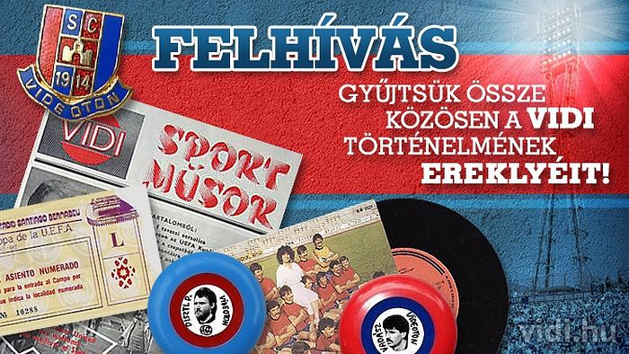 A Videoton FC gyűjtemény- ében már több különleges ereklye várja, hogy elfoglalhassa méltó helyét az új Sóstói Stadionban kialakításra kerülő Vidi Múzeumban, de néhány fontos időszakból még továbbra is hiányzik emlék. Várnak minden korszakból, de leginkább 1968 előttről emléktárgyakat, jelentkezni a muzeum@videotonfc.hu- címen lehet.